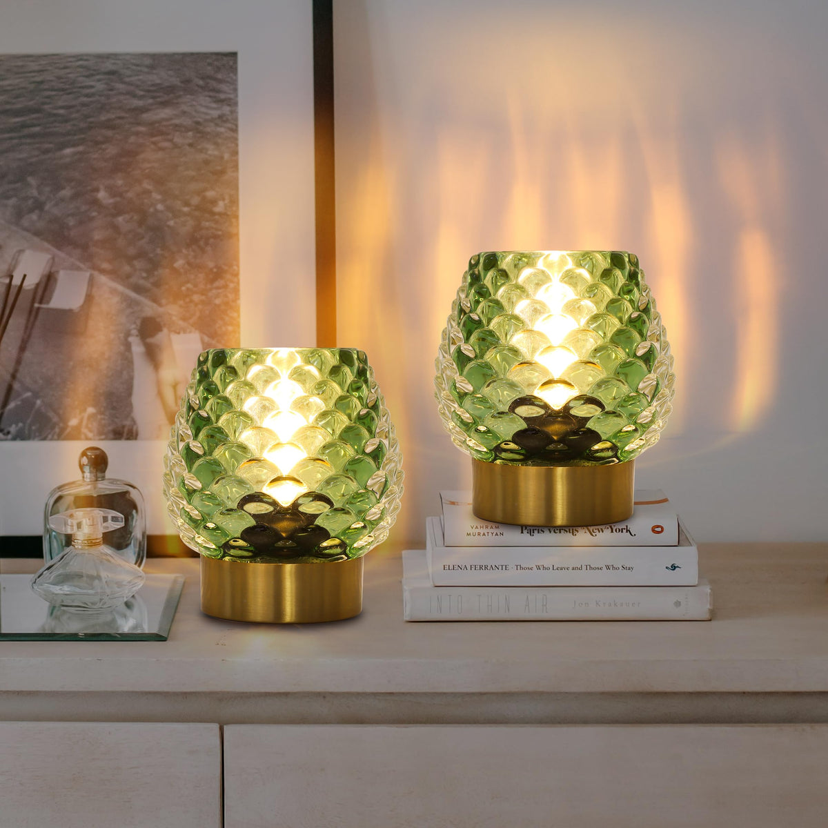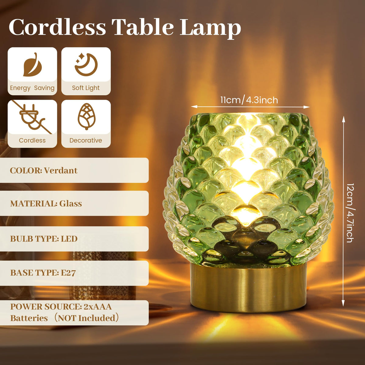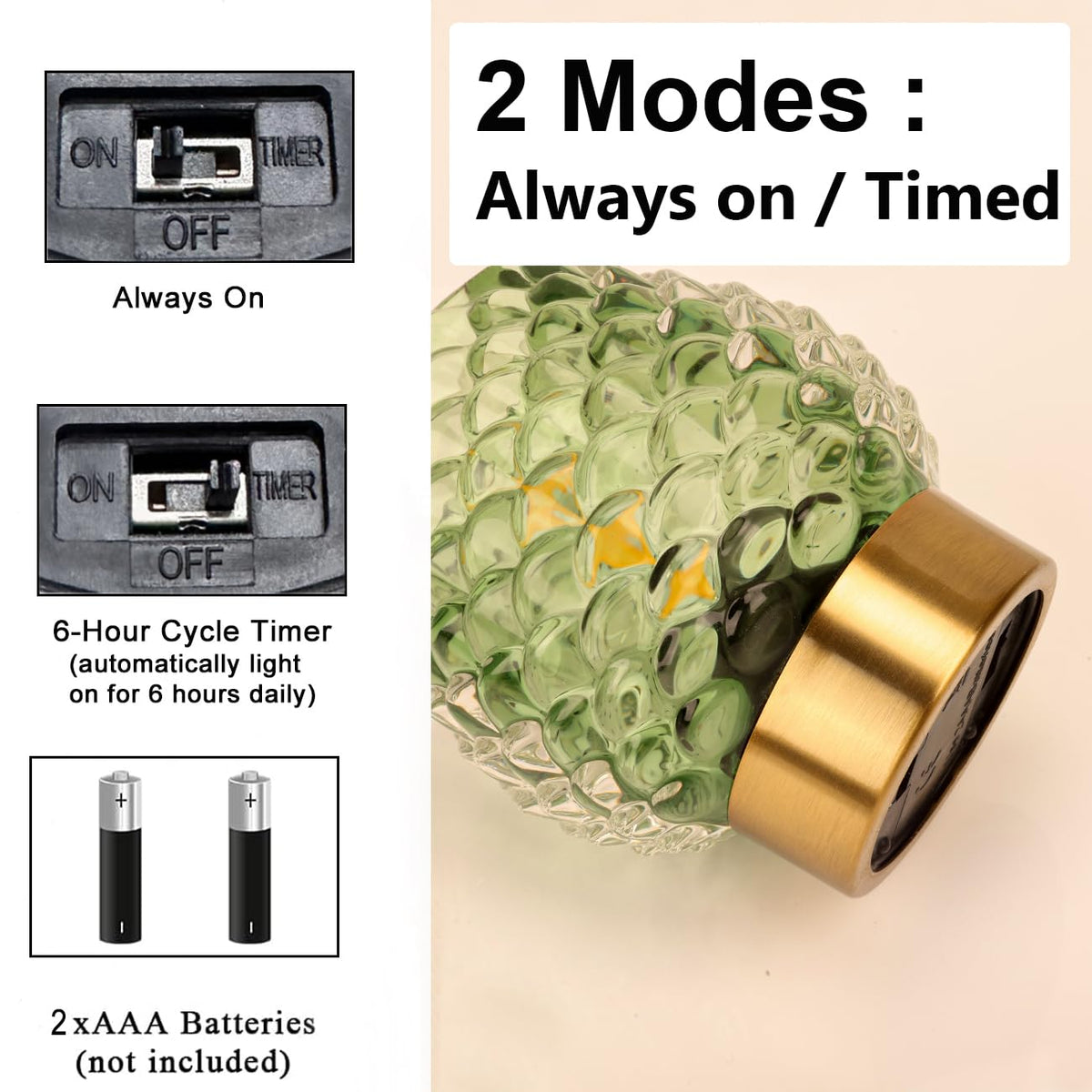 Cycodo 2 Pack Small Battery Operated Lamp with Timer,Cordless Glass Battery Powered Lamp with LED Bulb,Mini Lamp for Small Space
