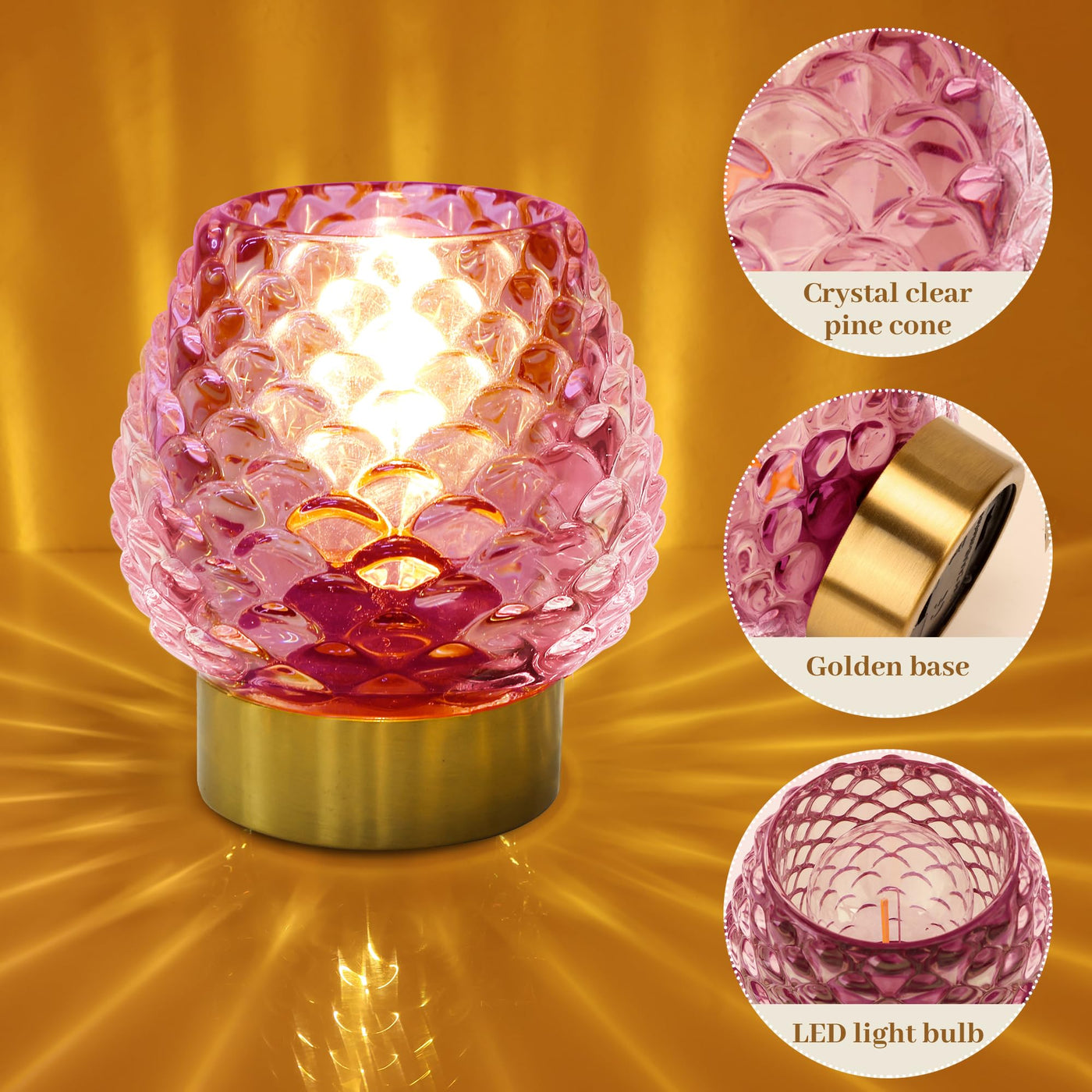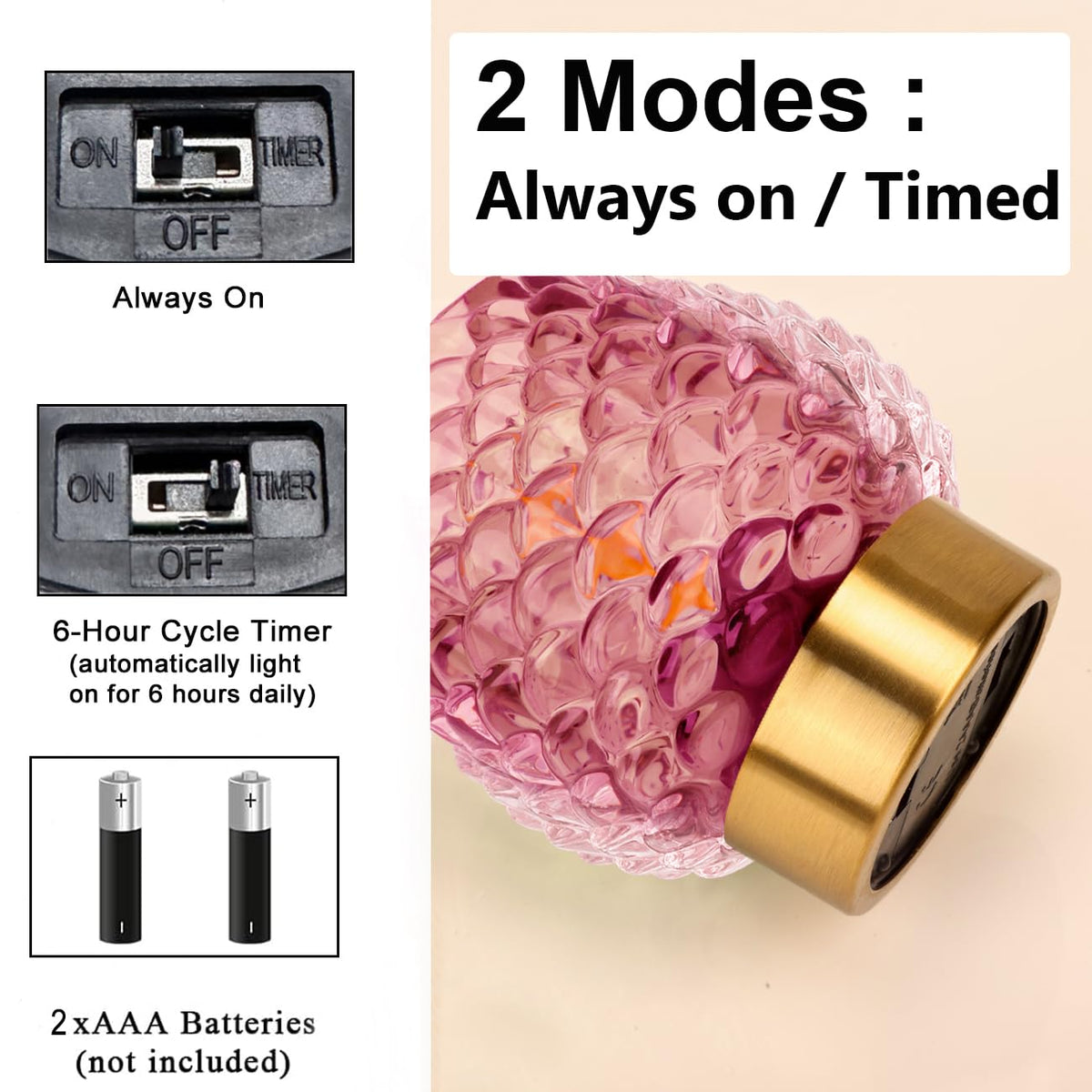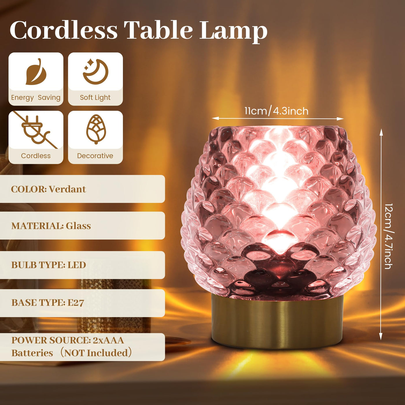 Cycodo Small Battery Operated Lamp With Timer,Cordless Glass Battery Powered Lamp With Led Bulb,Decorative Lamp For Small Spaces