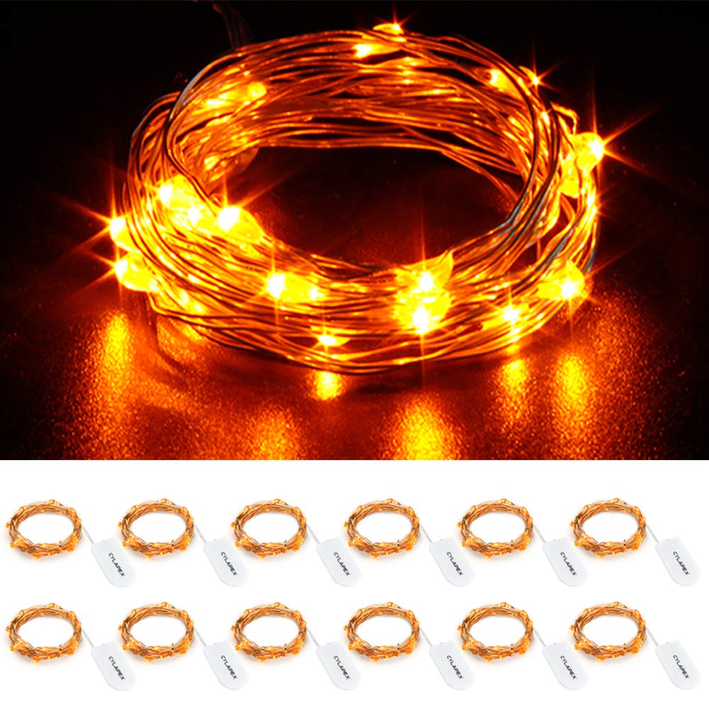 Cylapex 12 Pack Orange Fairy Lights String Battery Operated Fairy Lights Starry String Lights On 3.3Ft/1M Silvery Copper Wire Lights For Hallowen Christmas Decoration Costume Wedding Party