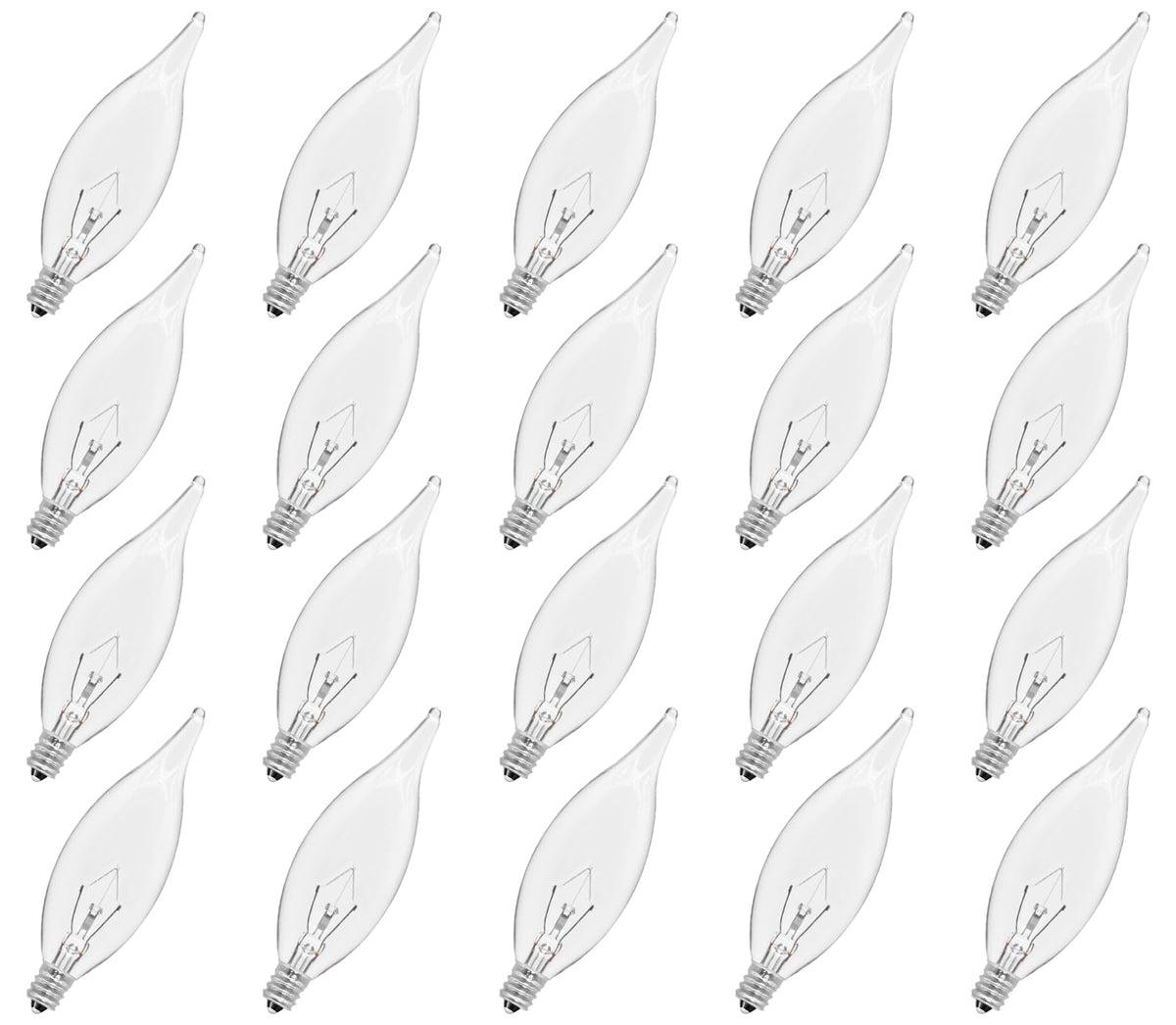 Cylyt 20-Pack E12 Candle Light Bulbs 25W Warm White 2500K, 240 Lumen Dimmable Chandelier Light Bulbs For Ceiling Fan, Pendants Or Outdoor, Ca10 Clear Candelabra Base Bulbs