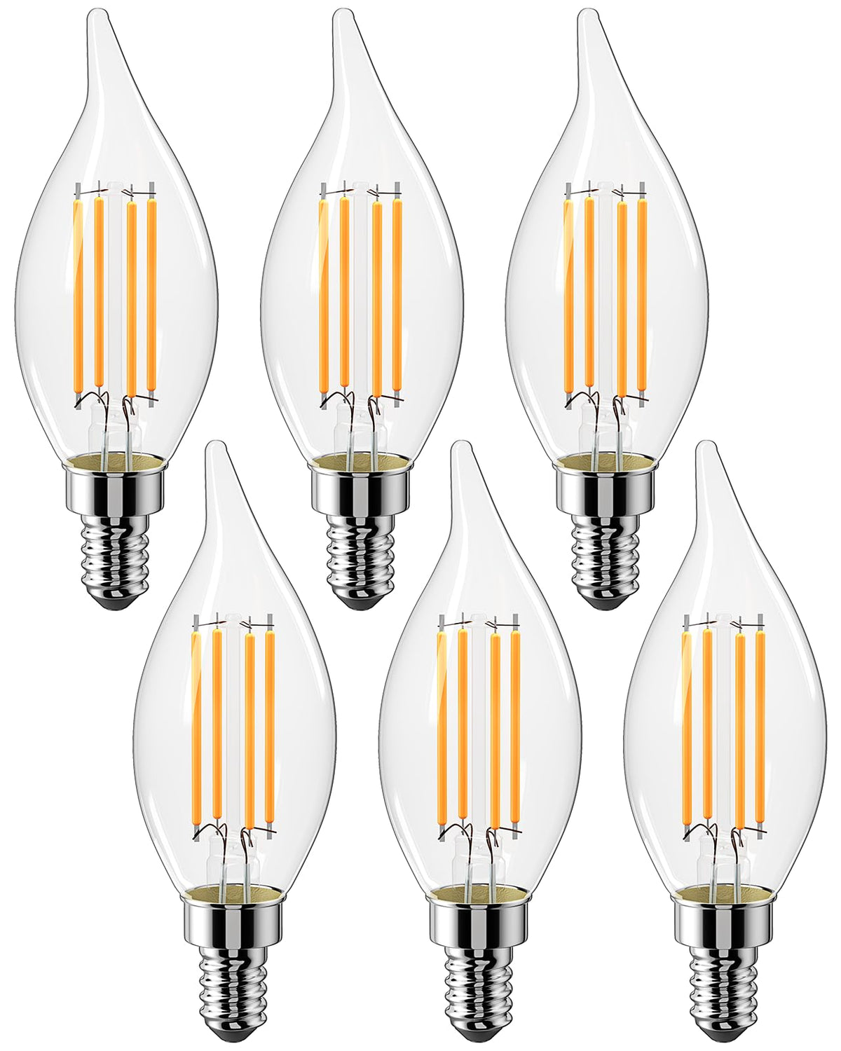 Cylyt E12 Chandelier Bulb 60 Watt Equivalent, Dimmable Led Candelabra Light Bulbs 6W, 2700K Warm White 650 Lumen Lightbulbs, Ca11, Ul Listed, Pack Of 6