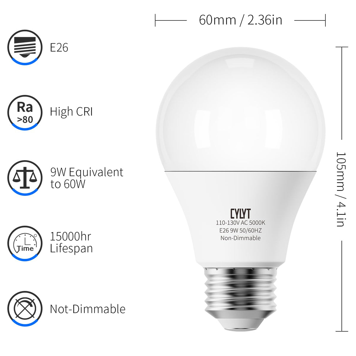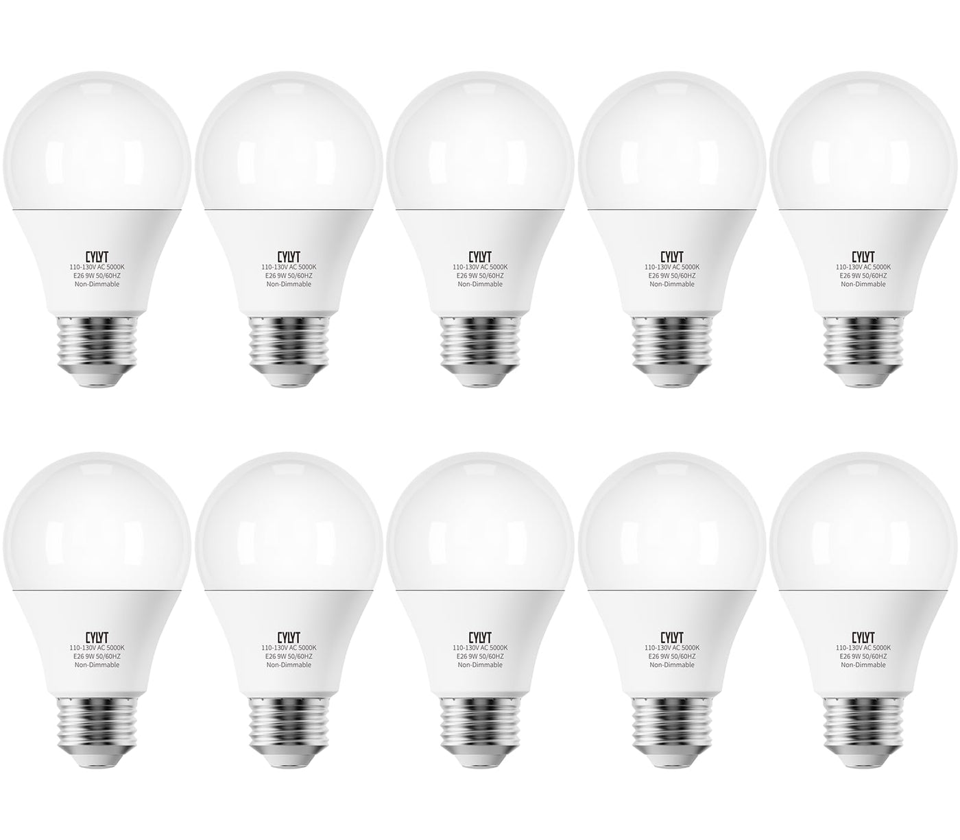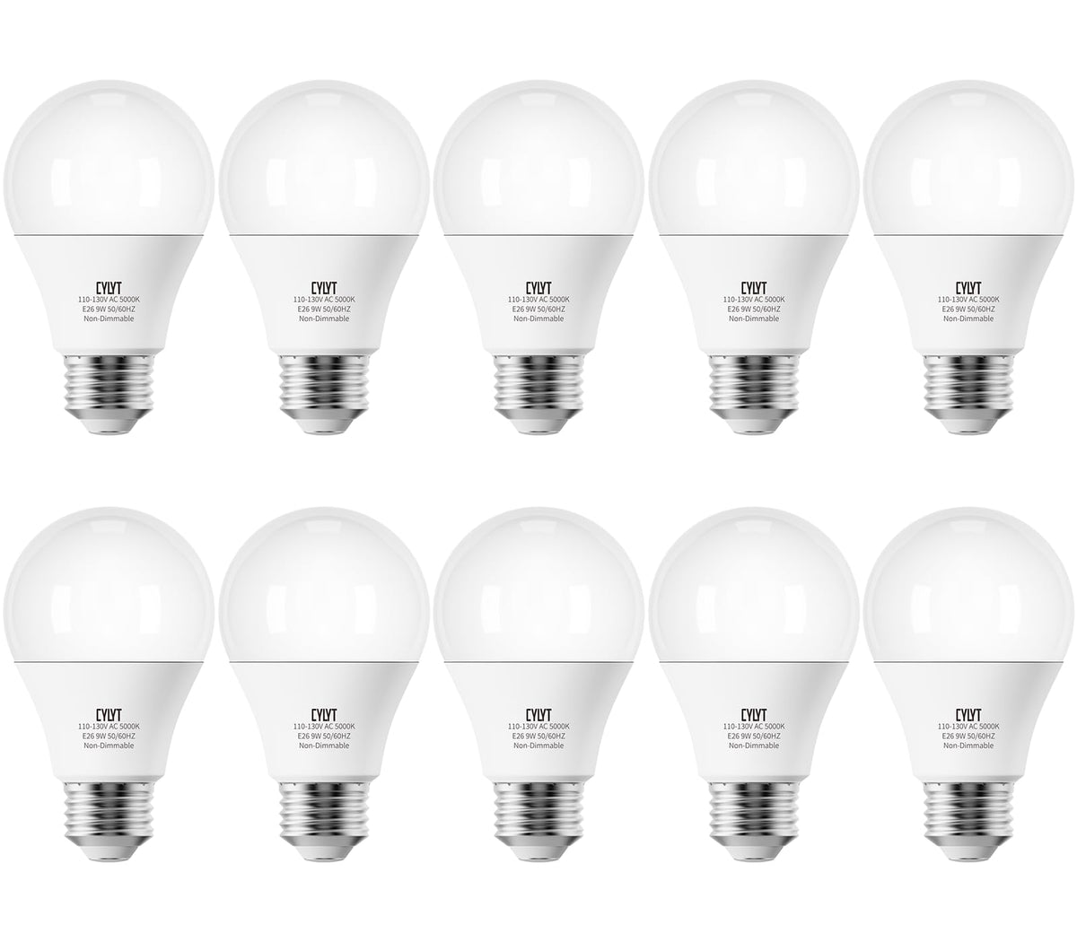 Cylyt Light Bulbs 60 Watt Equivalent Solt White 5000K, E26 A19 Led Light Bulb 9W 800 Lumen, Focos Led Para Casa, 120V 60Hz Lightbulbs For Indoor Outdoor, Non-Dimmable, 10-Pack
