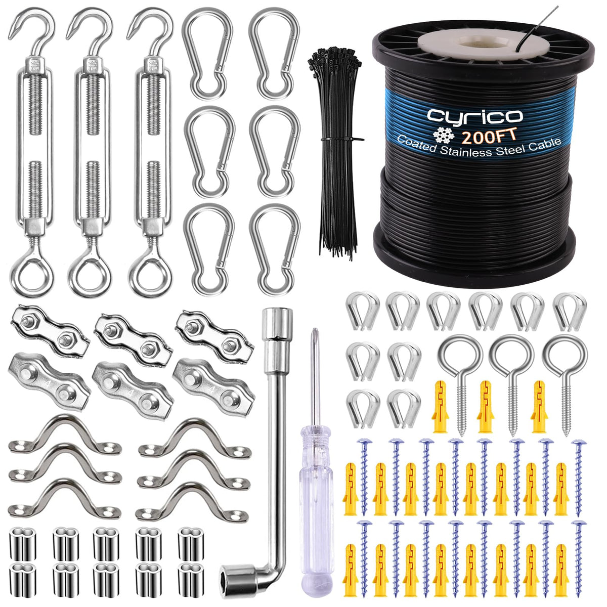 Cyrico String Light Hanging Kit, Outdoor Light Guide Wire, Globe String Lights Suspension Kit With 200 Ft Nylon Coated Stainless