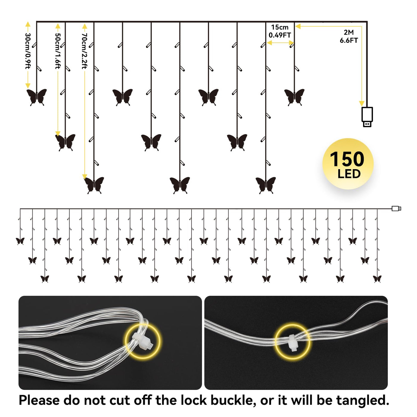 Dailyart Butterfly String Lights, 150 Led 20.9Ft Butterfly Curtain Lights 8 Modes Usb Power With Remote Control Butterfly Decorations For Bedroom, Room, Wall, Party, Ceiling, Wedding, Christmas