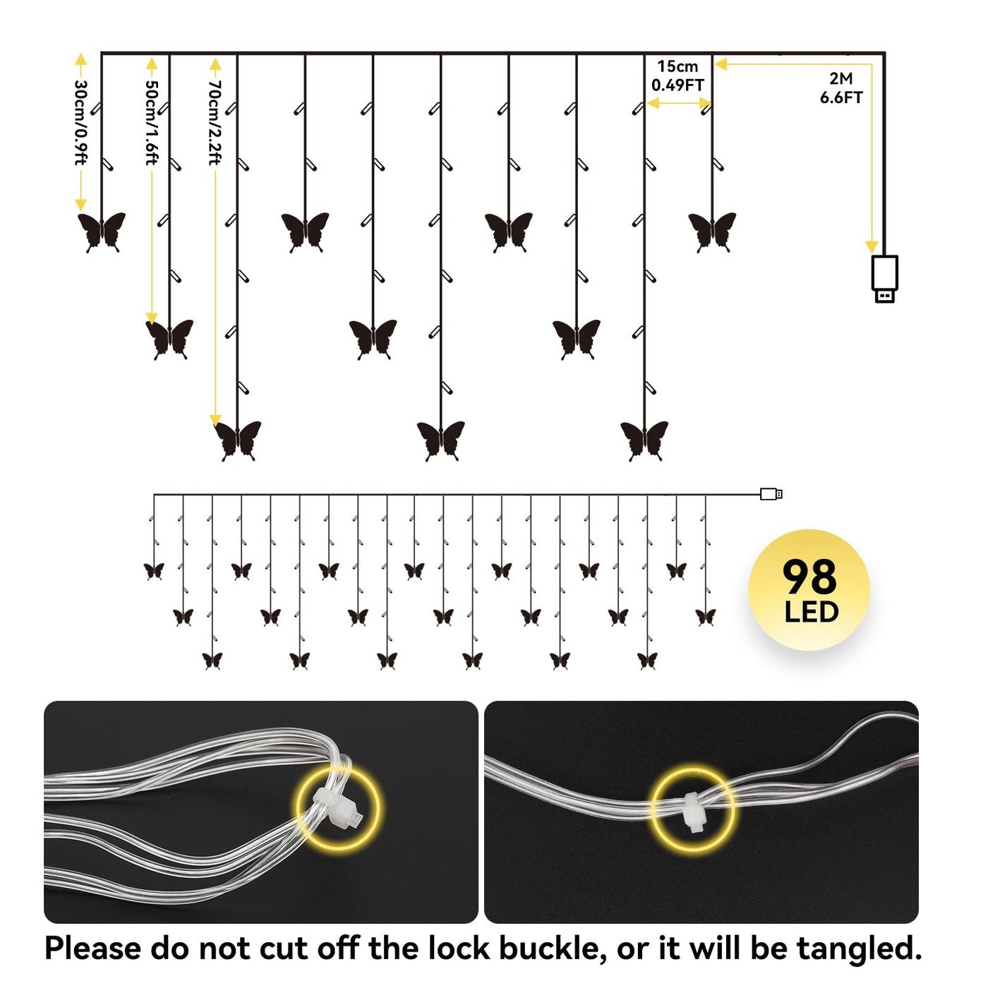 Dailyart Butterfly String Lights, 98 Led 15.9Ft Butterfly Curtain Lights 8 Modes Usb Power With Remote Control Butterfly Decorations For Bedroom, Room, Wall, Party, Ceiling, Wedding, Christmas