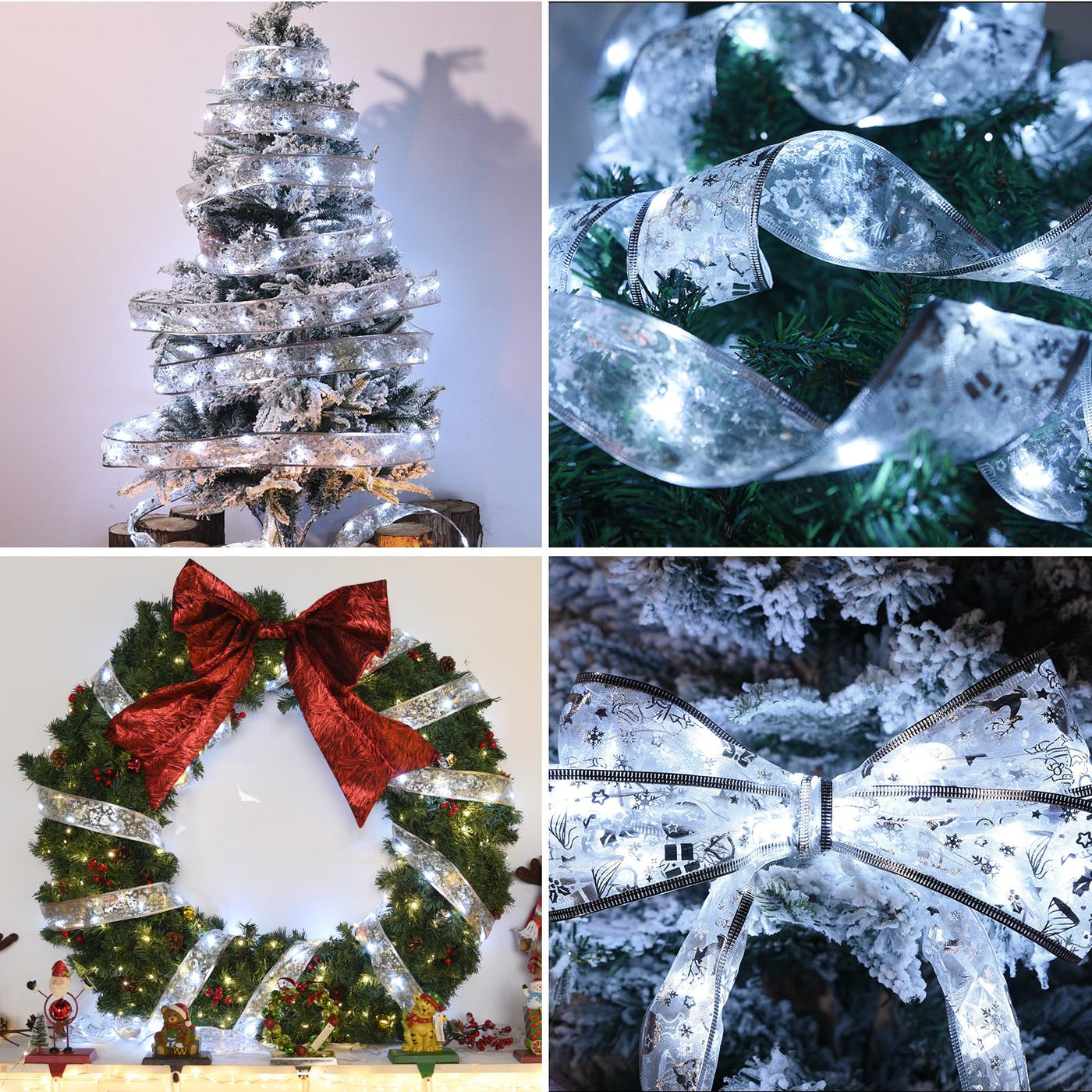 Dailyart Christmas Tree Ribbon Lights 2 Pack Total 100Led Fairy Lights Battery Operated & Usb Powered Indoor String Lights With