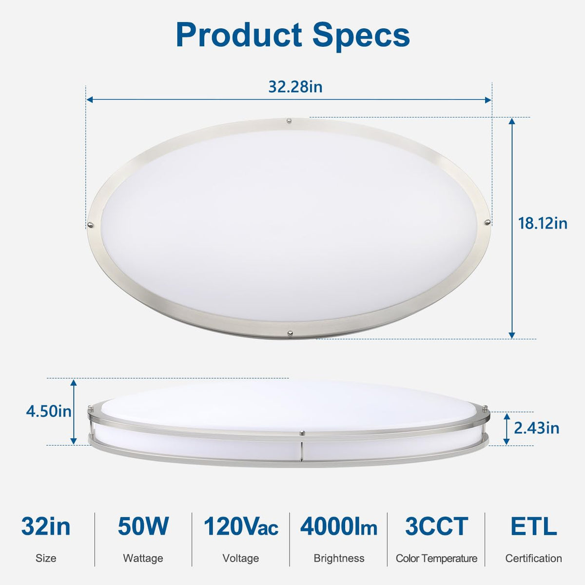 Dakason 32In Oval Led Flush Mount Light For Kitchen/Living Room, 50W Large Led Ceiling Light Fixture, 3500K/4000K/5000K Adjustab