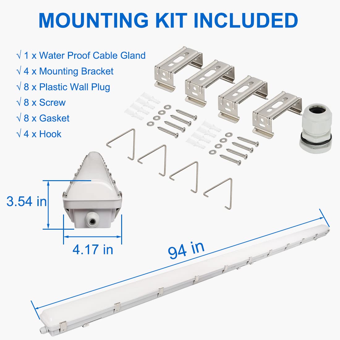 Dakason 8Ft Led Vapor Tight Light 120-100-80W Tunable, 15600Lm Led Vapor Proof Lighting Fixture Ip66 100-277V, Led Outdoor Shop