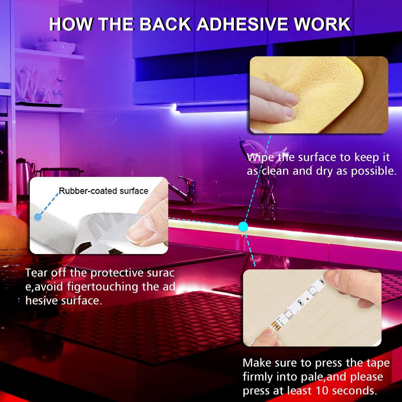 Q: How do I install the LED strip lights?A: Installation is simple; ensure the surface is clean and dry, then use the adhesive tape provided to stick the strips to any flat surface you desire. It's recommended to test the strip before installation.