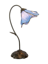 Illuminate your space with the exquisite Poleking series table lamp from Dale Tiffany. This stunning 1-light lily lamp effortlessly combines artistry and functionality, making it a perfect addition to any room in your home. With its unique light blue art glass shade and intricate metal base, this lamp not only provides light but also serves as a captivating decorative piece.