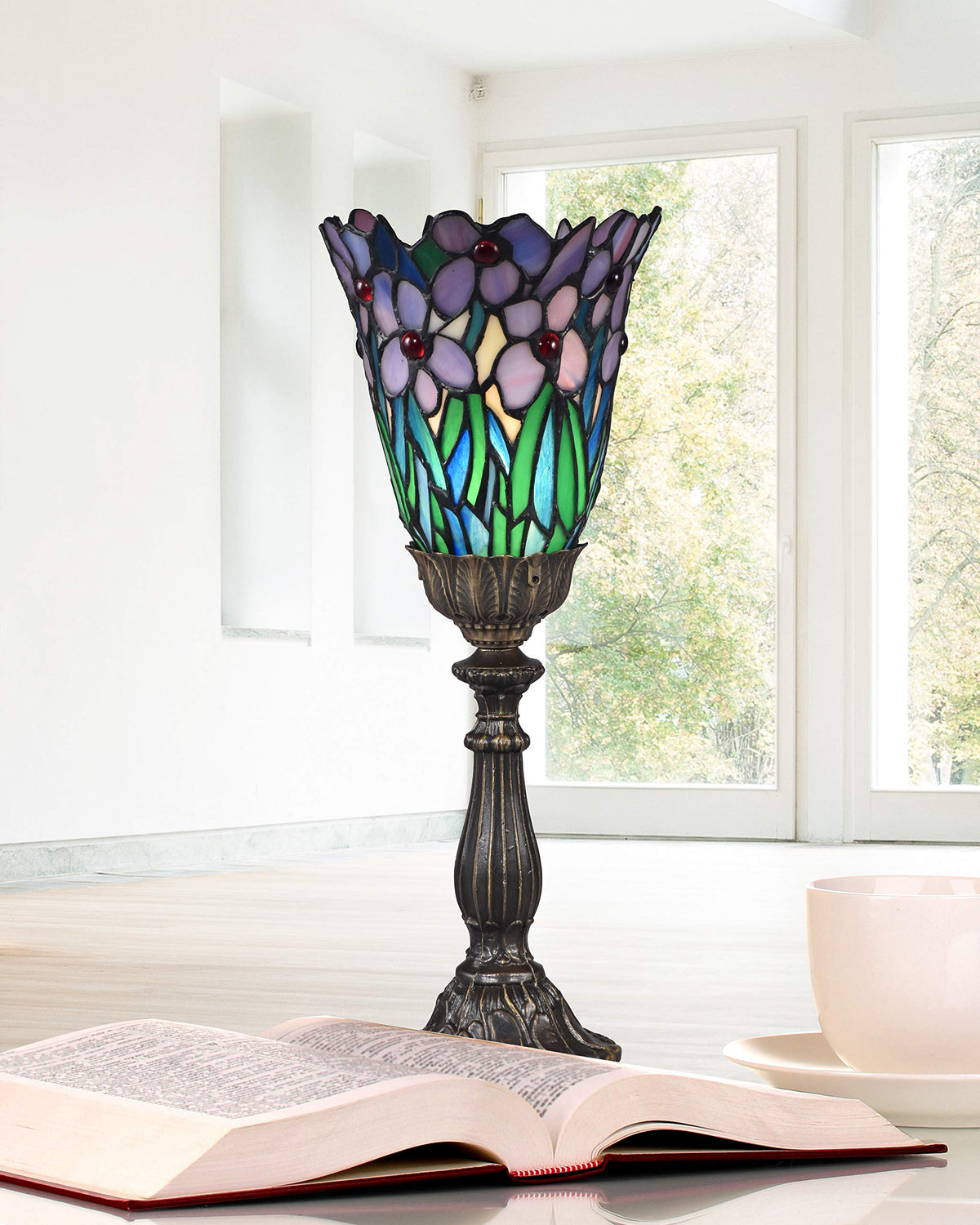 Delicate yet refined, the Meadowbrook uplight accent lamp will Please even the most discerning of tastes. Whether it is the intricate pattern in the uplight shade or the ornate carving in the metal base, this lamp will grace your home or office with refinement and style. Delicate yet refined, the Meadowbrook Uplight Tiffany accent lamp pleases even the most discerning of tastes. Grace your home or office with refinement and style today.