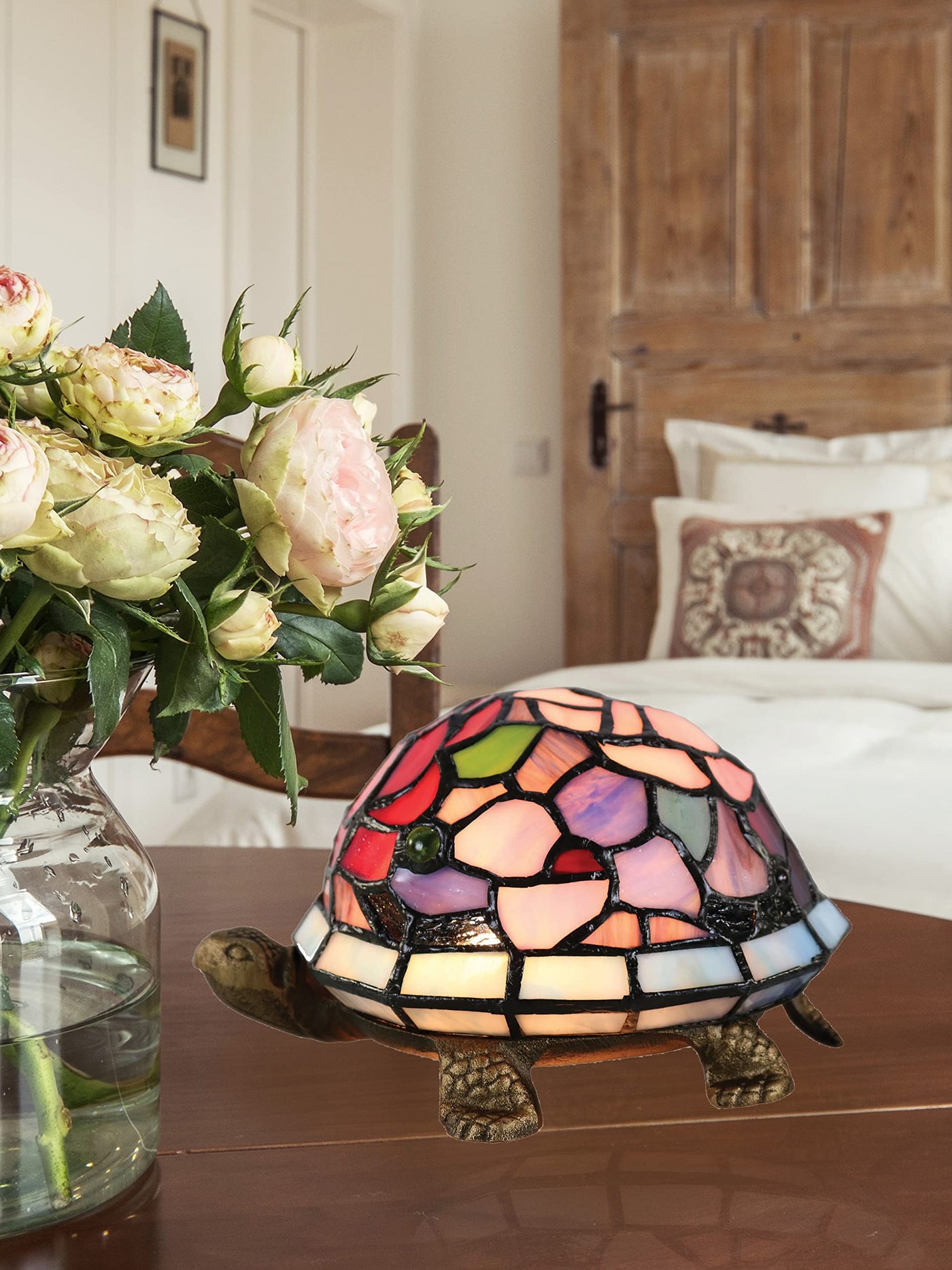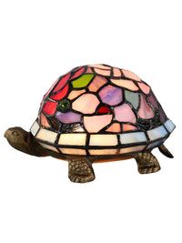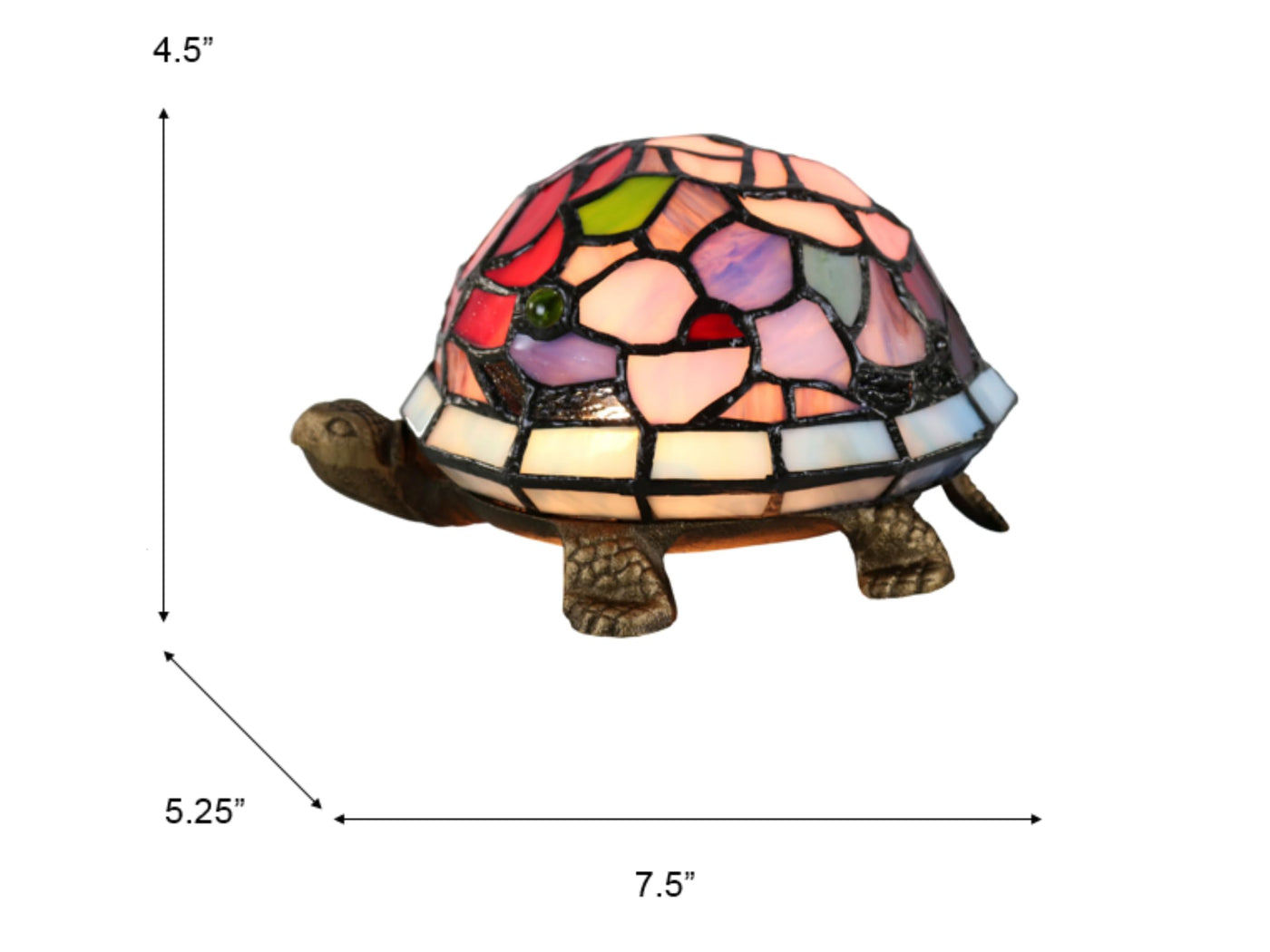 Perfect for a mantle, console table, or desk, the Toto Turtle Floral Tiffany Accent Lamp serves as a delightful focal point in any space. It also makes for an ideal gift for animal lovers and art enthusiasts alike. Please note that due to the handmade nature of the art glass, colors, sizes, and patterns may vary slightly, ensuring each piece is truly one-of-a-kind.