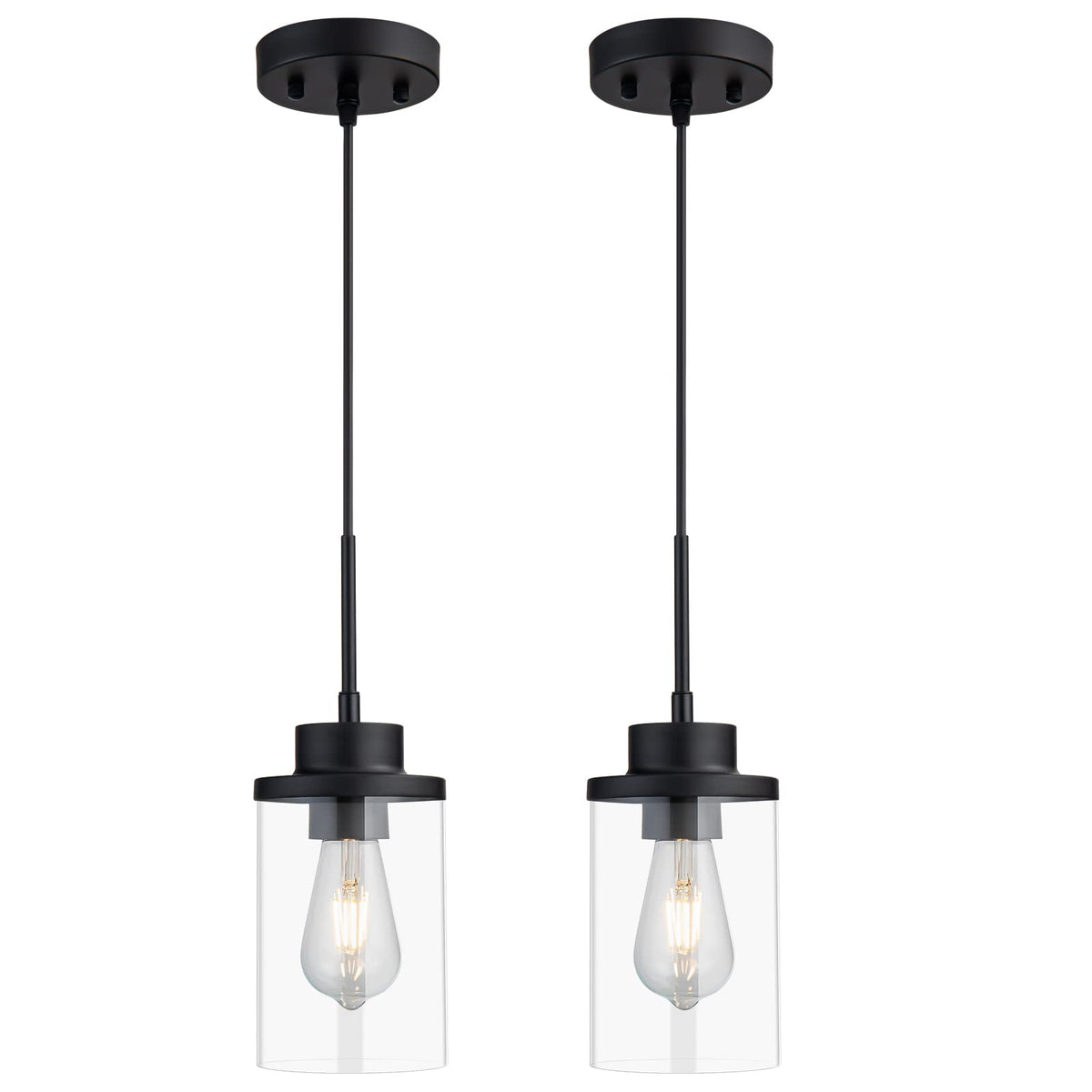 Dalivol Modern Black Farmhouse Clear Glass Cylinder Pendant Light Fixture, Single Hanging Pendant Lighting For Kitchen Island, Dining Room, Foyer & Hallway(2 Packs)