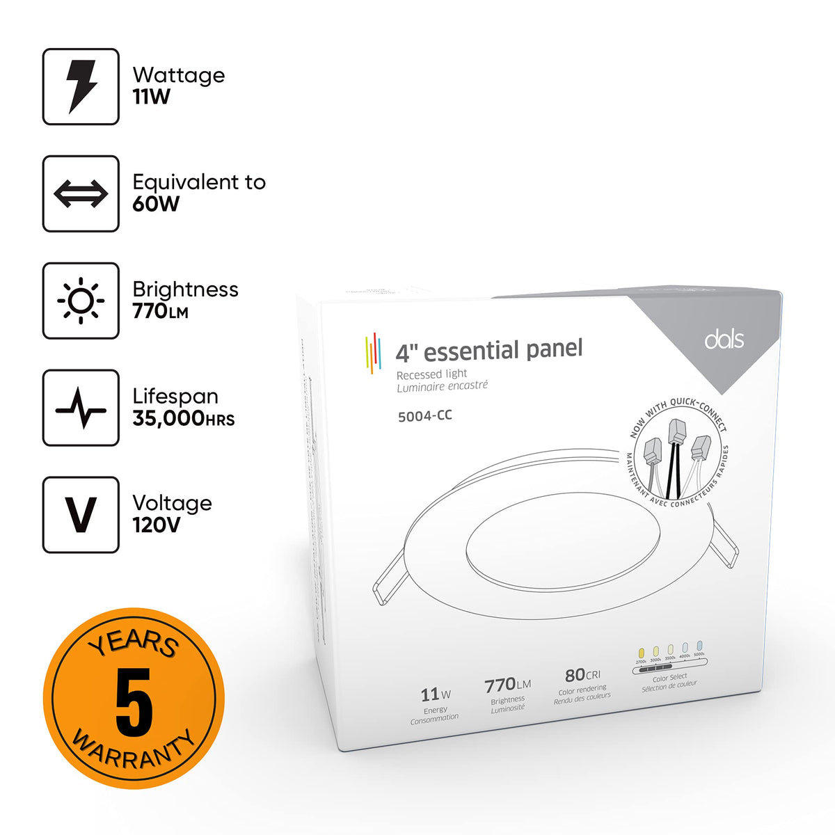 Dals 4 Inch Round Recessed Panel Light With Junction Box/Driver | Cct Color Selectable 2700K, 3000K, 3500K, 4000K, 5000K | 11W,
