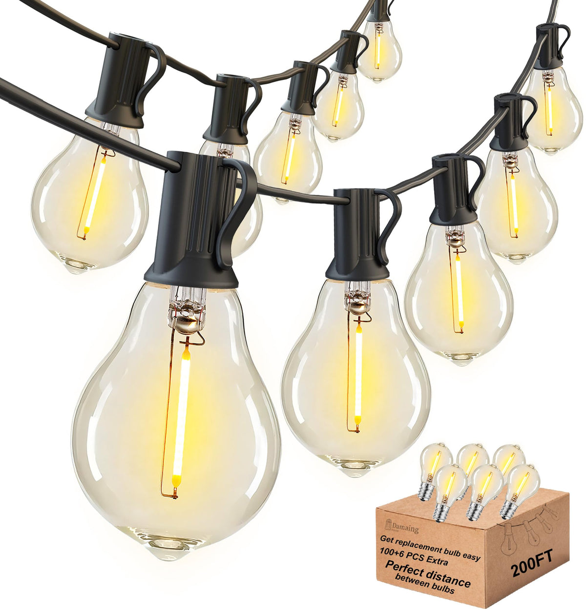 Damaing 200Ft Led Outdoor String Lights With 100+5 Shatterproof Bulbs A39, Ip44 Waterproof, Commercial Grade Patio String Lights