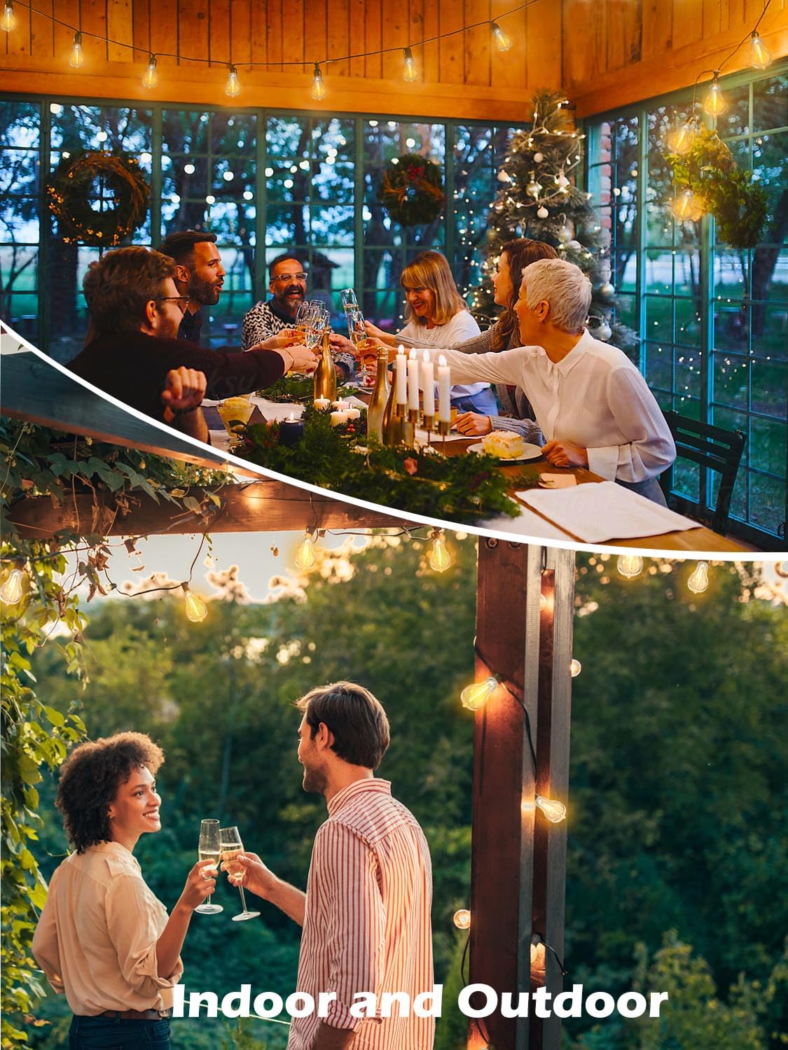 Warm And Cozy Outdoor String Lights Ideas To Make Your Space Cozy And Inviting, Warm Color 2700K Hanging String Lights,The Brightness Suit For Different Occasions. The Edison String Lights For Outside Connect Outlet, Perfect Decoration For Your Garden, Backyard, Tent, Pathway, Walkway, Patio, Porch, Ledge, Watering Plants, Tree And Flowers, Balcony, And So On. Whether You'Re Looking To Decorate For Parties, Wedding, Anniversary, Camping, Birthday, Christmas, Family Dinners And Reunions, Or Simply Add Some Decorative Lights To Your Patio, Our A39 Patio Lights Are The Perfect Solution. Enjoy Until Late: The Patio String Lights, Weatherproof String Lights Can Also Be Used In Conjunction With Other Lighting Sources, Such As Lamps Or Deck Lights, To Magnify The Lighting Effect, Increase The Illumination And Create Distinct Designs That Aren? Possible Without Outdoor String Lights.