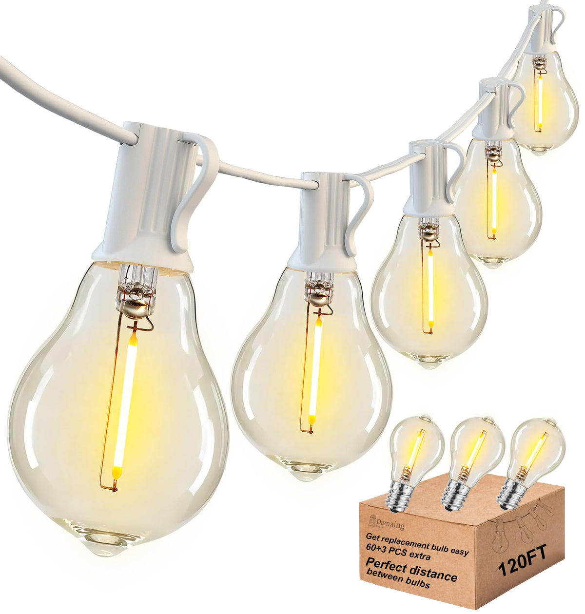 Q: What is the length of the DAMAING Outdoor String Lights?A: The DAMAING Outdoor String Lights are 120 feet long, providing ample coverage for decorating backyards, gardens, and outdoor events.