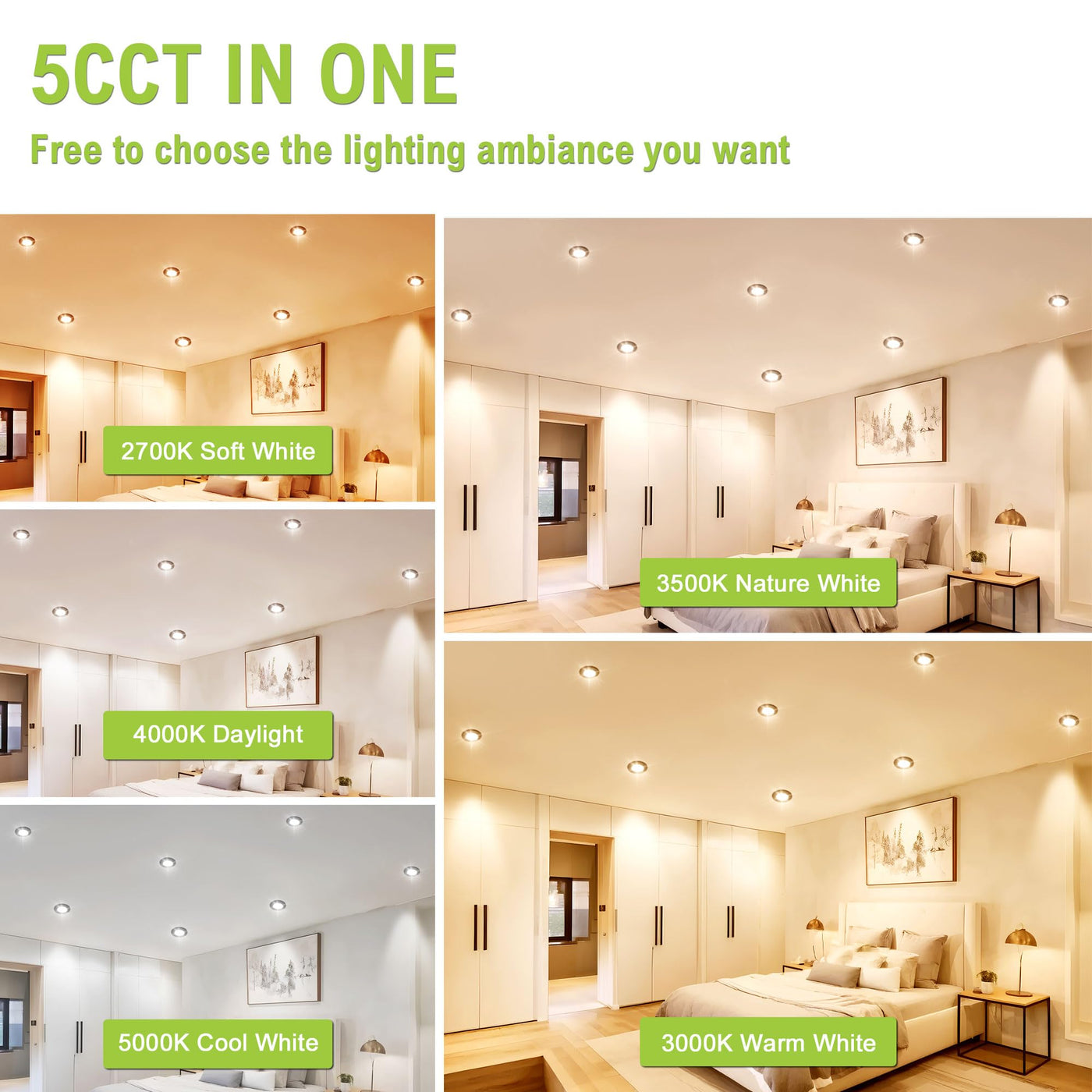 Daminy 24 Pack 6 Inch Black Led Recessed Lighting With Junction Box 5Cct Ultra-Thin Recessed Light 10W 1100Lm Dimmable Canless Wafer Ceiling Light High Brightness - Etl