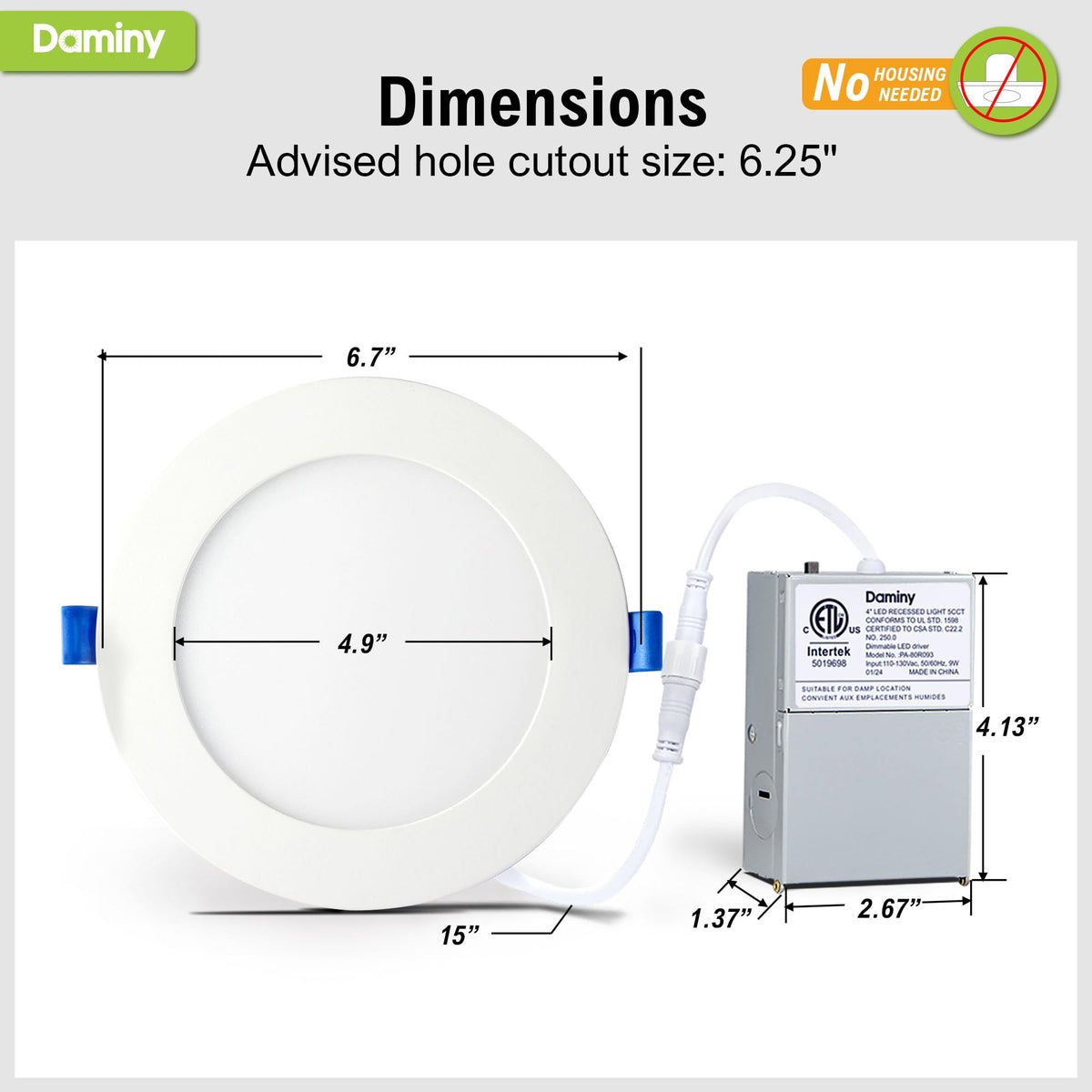 Q: What safety certifications do DAMINY recessed lights have?A: The DAMINY recessed lights are IC rated and ETL certified, ensuring they meet safety standards and pose no fire risk during operation.