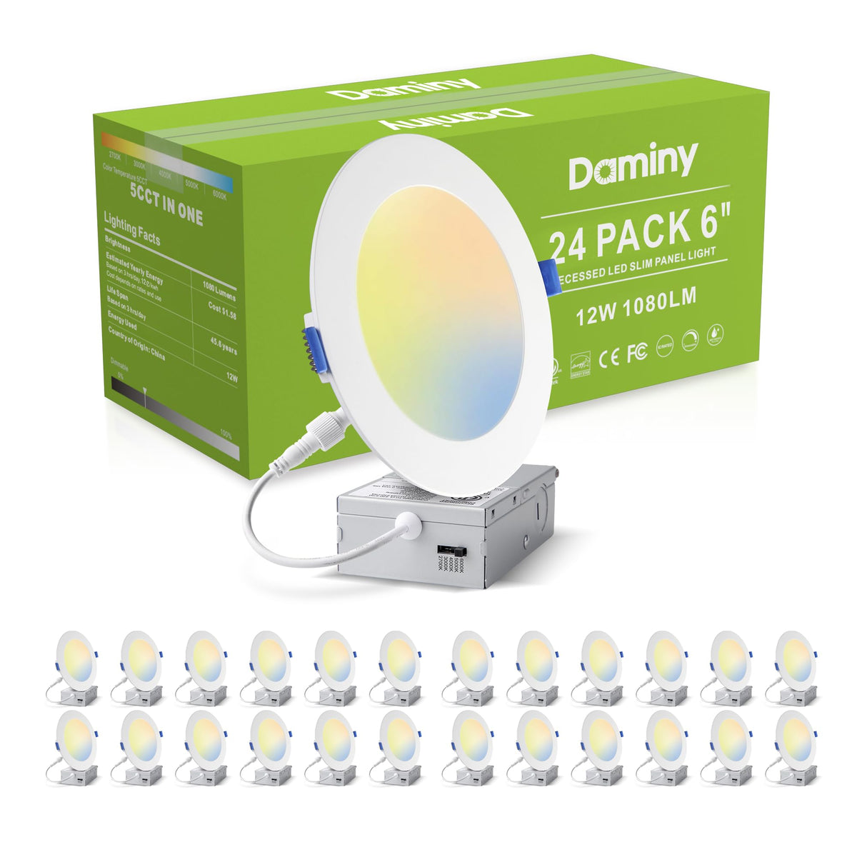Daminy 24 Pack 6 Inch Led Recessed Lighting With Junction Box,5Cct,Ultra-Thin Recessed Light,12W 1080Lm, Dimmable Canless Wafer