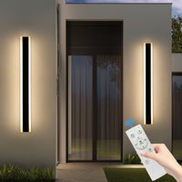Daoseolo 2 Pack 31.4Inch Modern Outdoor Led Wall Sconce, Dimmable 3000K-6000K With Remote Control, Ip65 Waterproof Black Aluminium Long Exterior Wall Light Fixture For Porch, Patio, Garage, Yard
