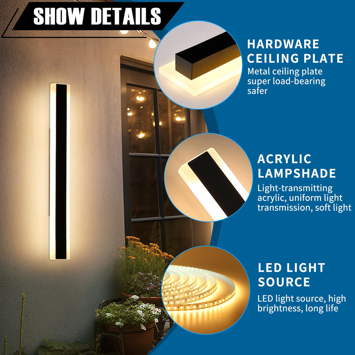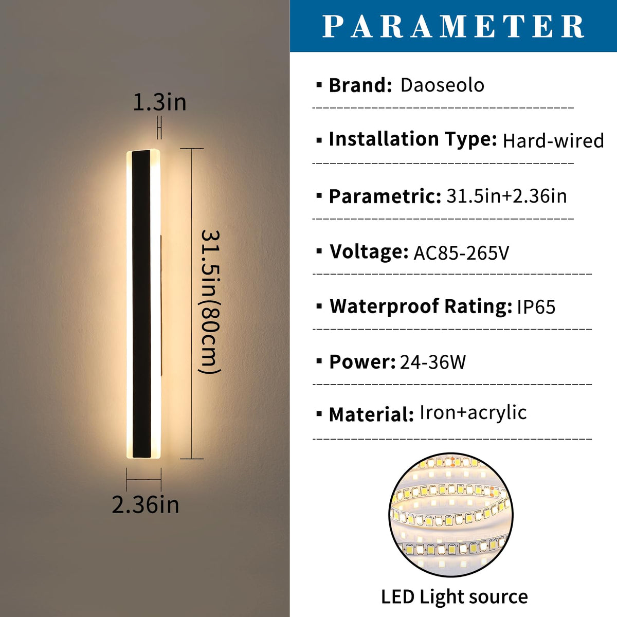Q: How do I install the Daoseolo LED wall sconce?A: The Daoseolo LED wall sconce can be easily installed either vertically or horizontally with the included hardware. It requires hardwired AC 85-265V power and is suitable for various outdoor applications.