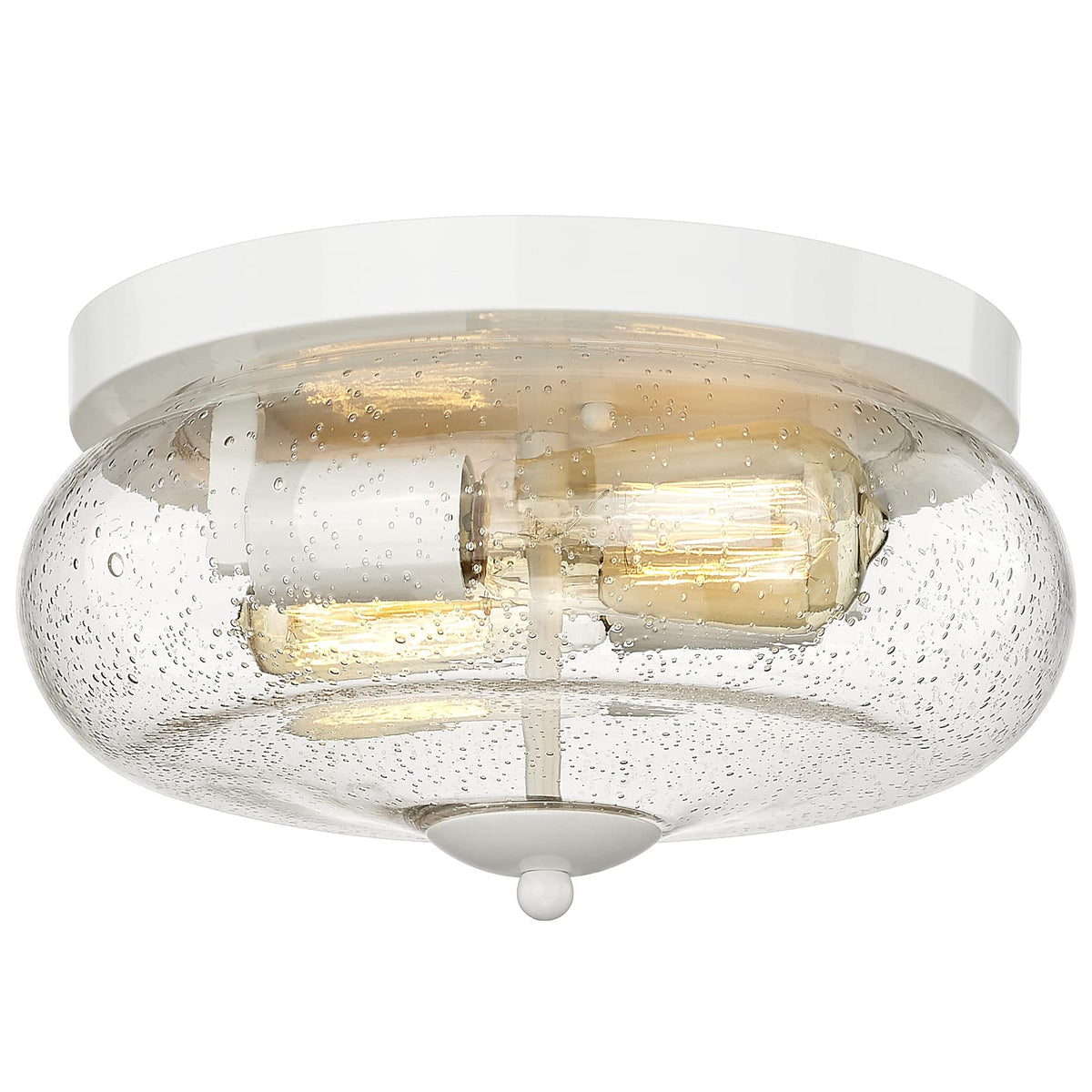 Darkaway Ceiling Light Fixture - Flush Mount Indoor/Outdoor - Seeded Glass Shade - 11 inch - White - Model 6T1F