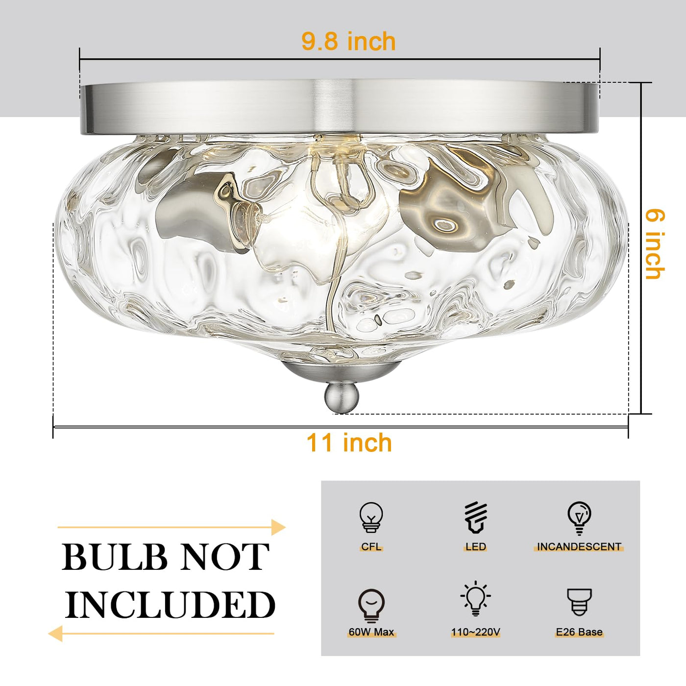 Darkaway Farmhouse Flush Mount Indoor Outdoor Ceiling Light With Water Ripple Glass Shade For Hallway Kitchen Bedroom Porch Living Room Nickel Finish 6T1F Bn+Wg