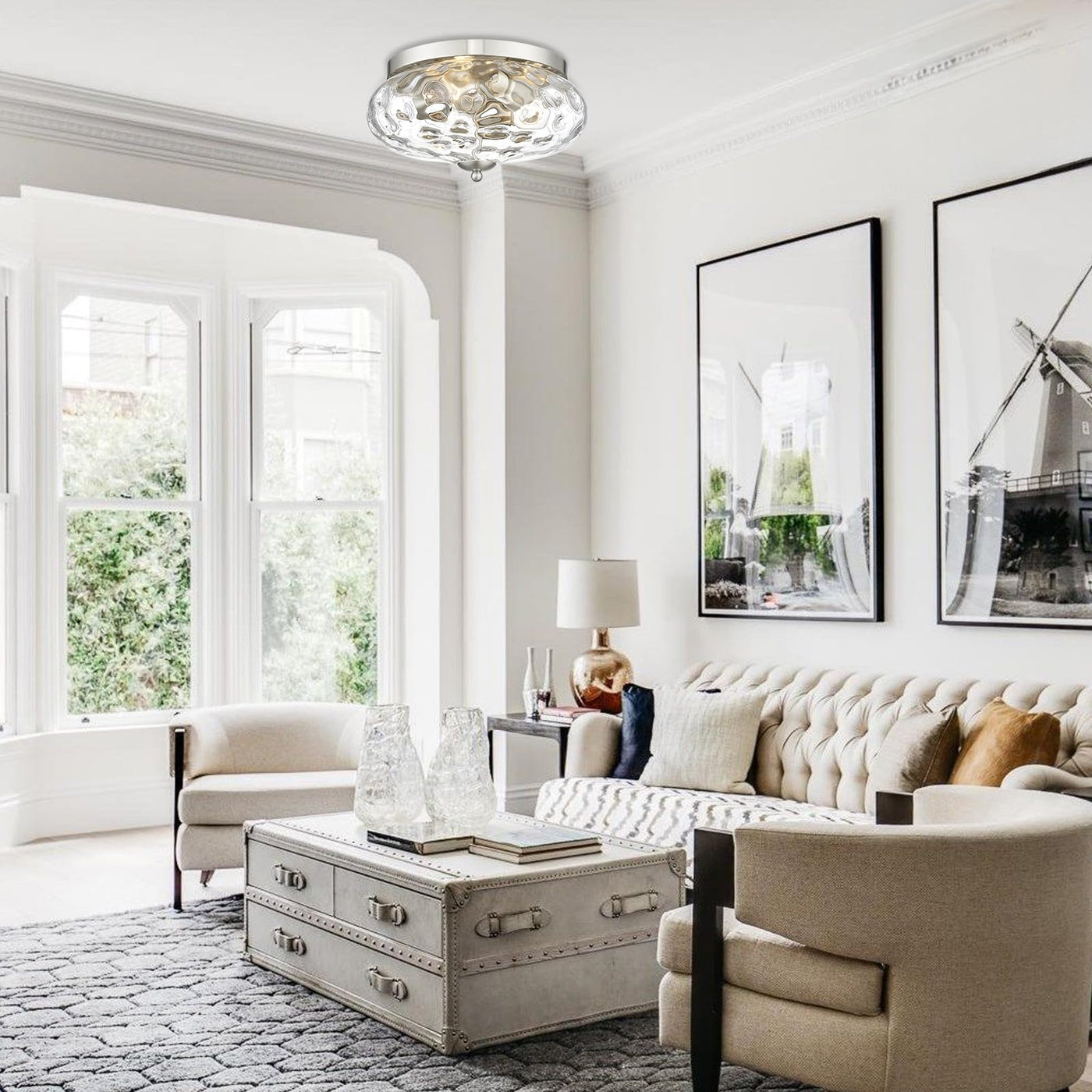 Q: How do I clean and maintain the glass shade of the ceiling light?A: To clean the water ripple glass shade, simply wipe it down with a soft cloth. Make sure to turn off the power and allow the light to cool before cleaning to ensure safety.