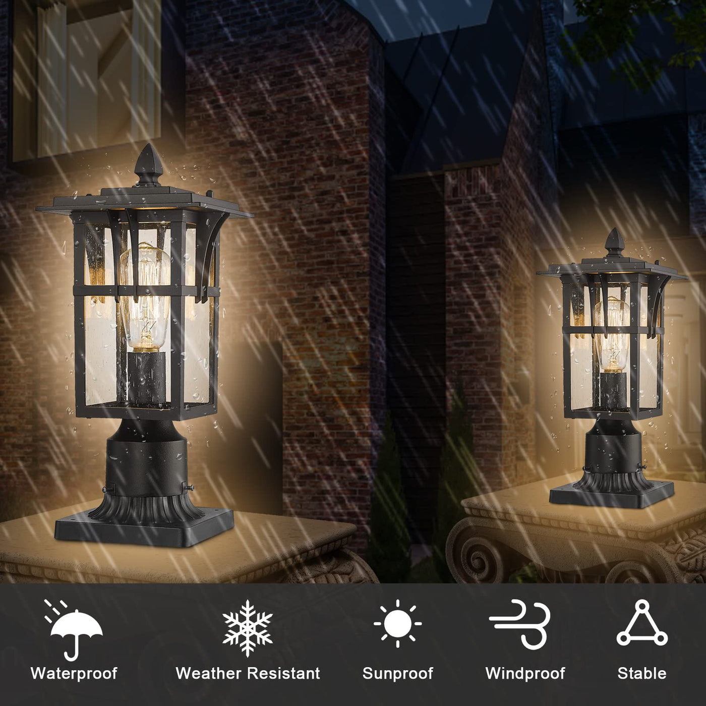 Darkaway Outdoor Post Light Base Mount, Post Light Adapter 3'' Pier Mount Base With Matte Black Finish For Deck Porch Patio, 5.5