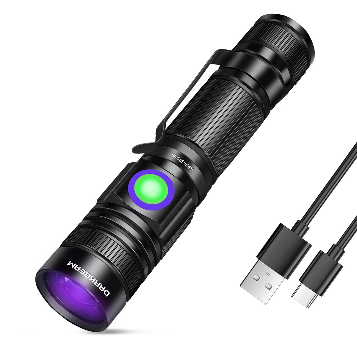 Darkbeam Uv Black Light Flashlight 395Nm - Rechargeable Usb Woods Lamp, Powerful Mini Ultraviolet Led Blacklight Flashlights - R