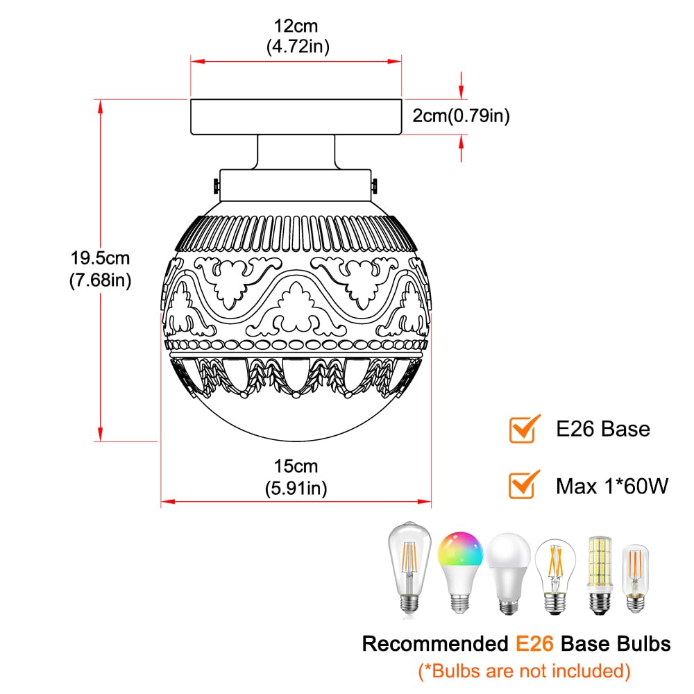 Daunton Semi Flush Mount Ceiling Light, Modern Globe Milk Glass Ceiling Light Fixture, Vintage Small Black Hallway Light Fixture