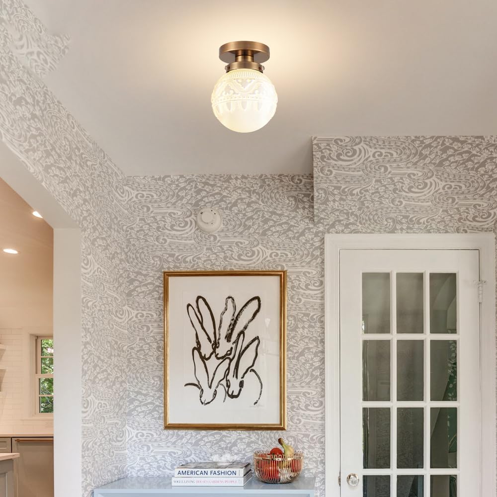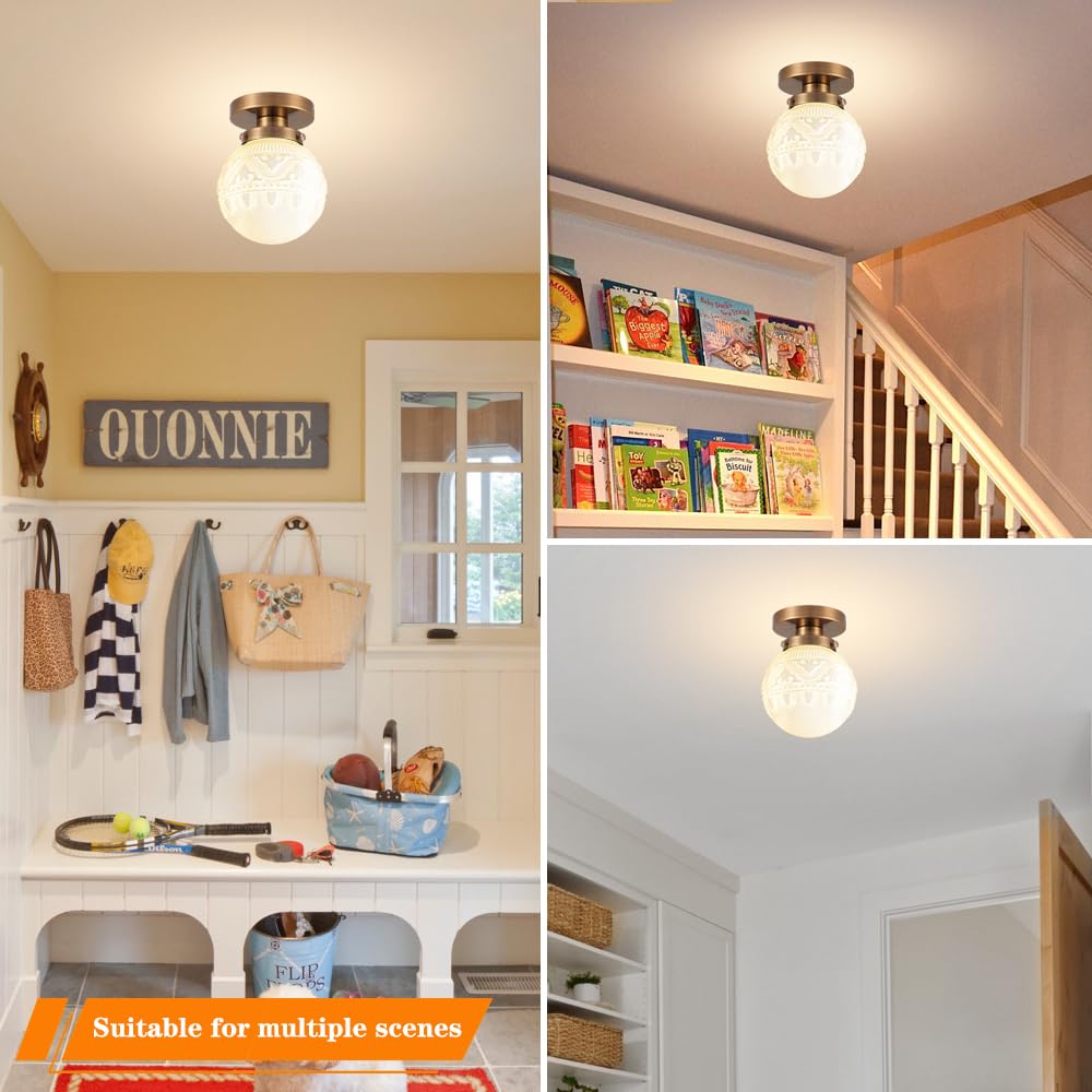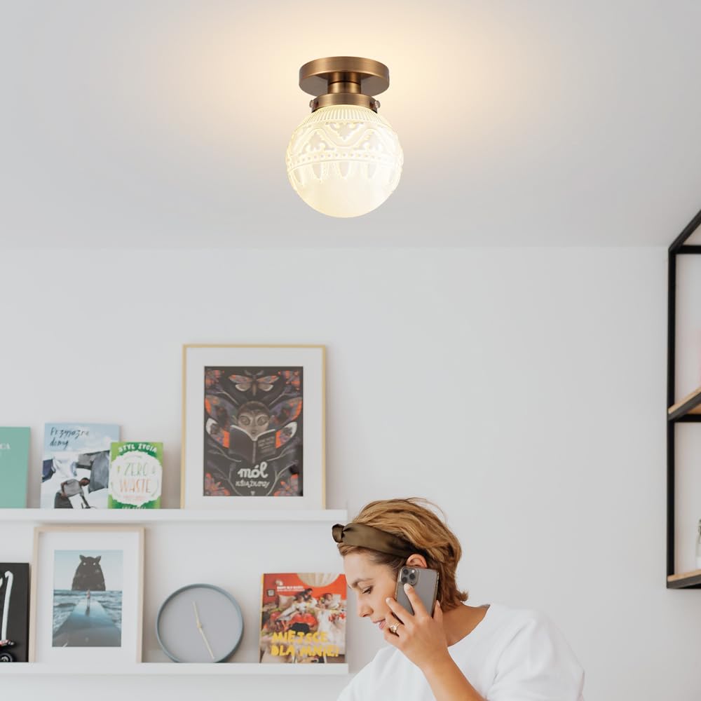 Daunton Semi Flush Mount Ceiling Light, Modern Globe Milk Glass Ceiling Light Fixture, Vintage Small Brass Gold Hallway Light Fi