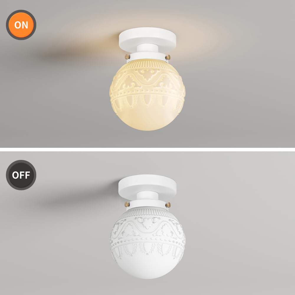 Daunton Semi Flush Mount Ceiling Light, White Hallway Fixture, Vintage With Milky Glass Globe, Close To Ceiling Indoor Hanging L