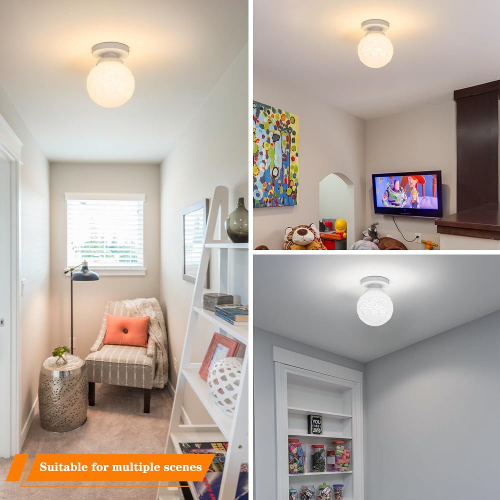 Q: Where can I use this vintage ceiling light fixture?A: This versatile semi flush mount ceiling light is perfect for various settings, including hallways, entries, porches, mudrooms, stairwells, kitchens, closets, kids' rooms, dining rooms, bedrooms, living rooms, bars, cafes, and restaurants.