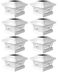 Davinci Lighting Renaissance Solar Post cap Lights turn your posts into outdoor lights These bright and beautiful solar powered lamps charge in sunlight and turn on automatically at night Versatile: - Fixtures fit 4 inch vinyl posts, as well as 4 inch 5 inch and 6 inch wood posts - can be also set on any flat surface - Perfect for fence, deck, patio, path, dock, railing, or garden lighting cordless: - Place them anywhere, without worrying about wires Easy to Install: - Avoid the cost and headache of hiring an electrician or contractor - Simply screw onto your post Built to Last: - Weve worked hard to build the best lights that deliver great value - UV protected housing and matte textured finish - Weatherproof for use in rain, sleet, or snow - Lifelong LEDs Specifications: - 25 lumens brightness - Warm white (3000 Kelvin) LED - 12v 800mAh NiMH AA size rechargeable battery (replaceable) - Advanced monocrystalline solar panel - 7-8 hours of battery life after 8 hours of direct sunlight Included Base Sizes: - 4 Inch Vinyl: 4 x 4 - 4 Inch Wood: 35 x 35 - 5 Inch Wood: 45 x 45 - 6 Inch Wood: 55 x 55