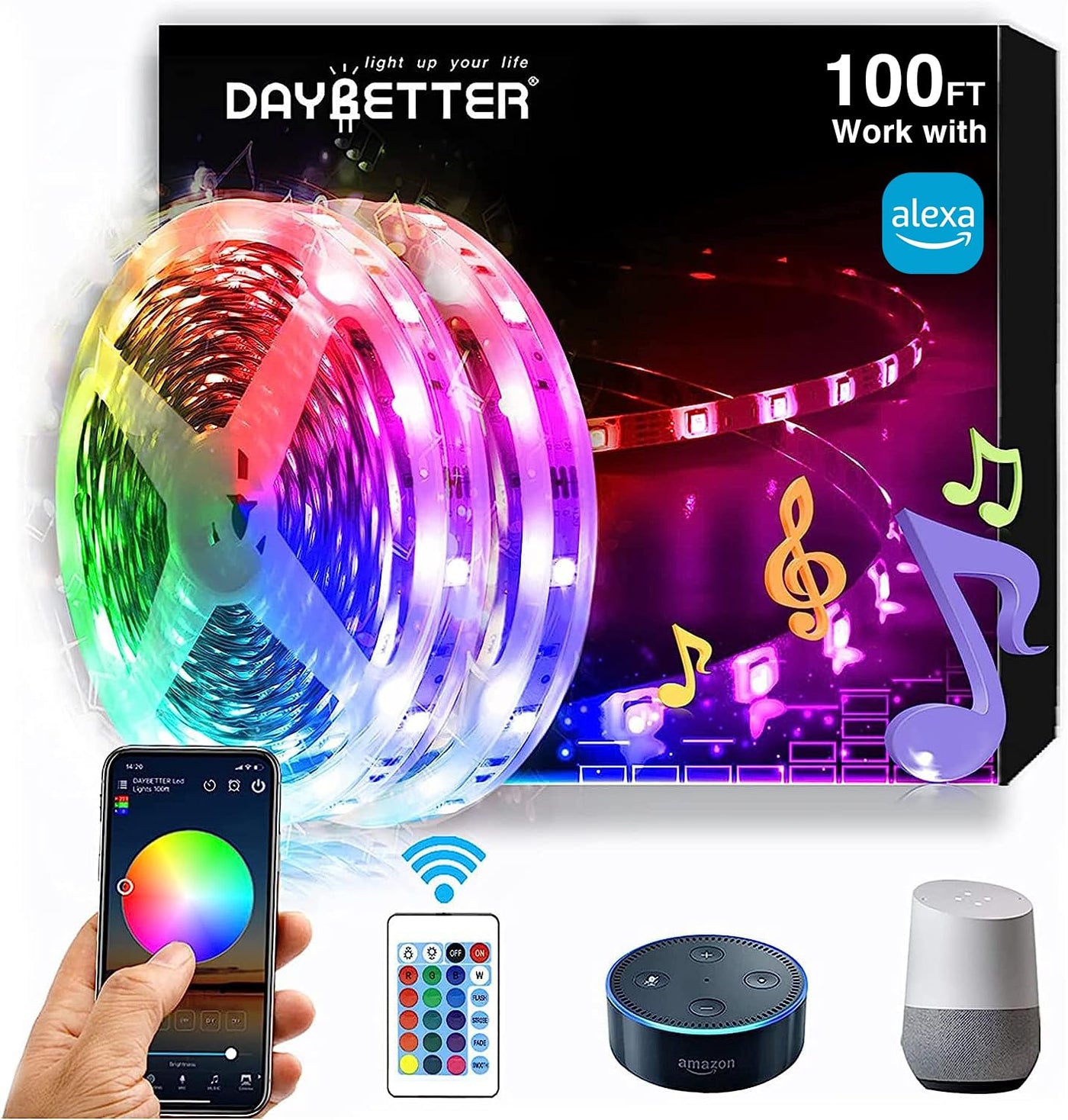 Daybetter 100Ft Rgb Led Strip Lights Kit, Smart Wifi, Works With Alexa & Google Assistant