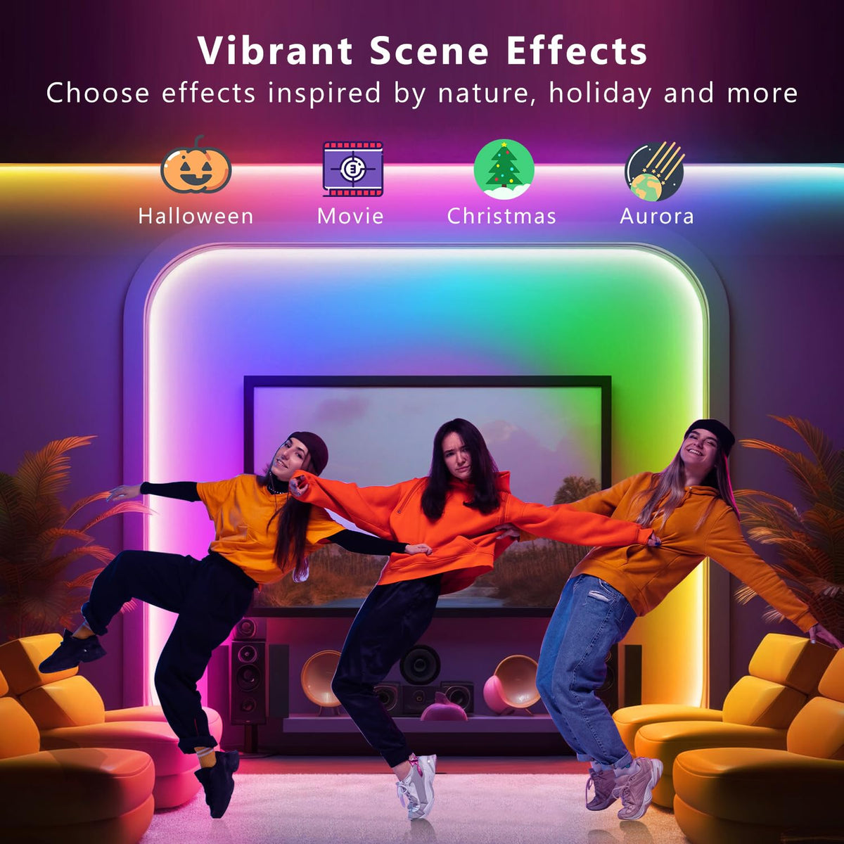 Q: Is there a music sync mode for the DAYBETTER LED strip lights?A: Yes, the DAYBETTER LED strip lights come with a music sync mode. The integrated high-sensitivity microphone allows the lights to dance and change colors in sync with your favorite audio, creating a vibrant atmosphere for parties and gatherings.