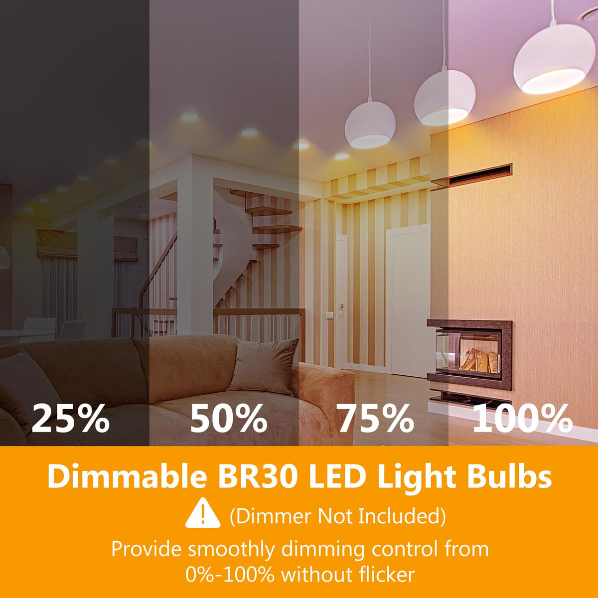 Q: Can I use these bulbs in any room of my house?A: Absolutely! The DAYBETTER BR30 LED bulbs are versatile and can be used in various settings, including living rooms, kitchens, bedrooms, bathrooms, hallways, and more, ensuring you have warm lighting wherever you need it.