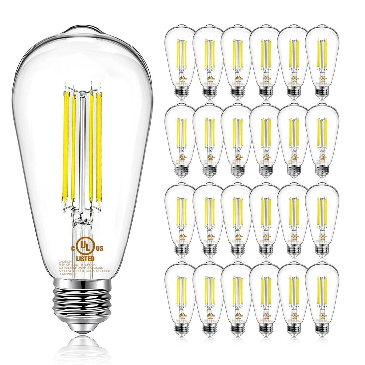 Daybetter 24 Pack Vintage Led Edison Bulbs, E26 Led Bulb 60W Equivalent, Dimmable Led Light Bulbs, High Brightness 800 Lm Daylight White 5000K, St58 Antique Filament Bulbs, Clear Glass Style For Home