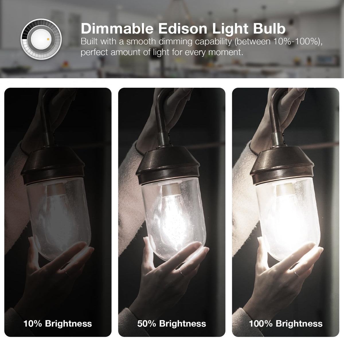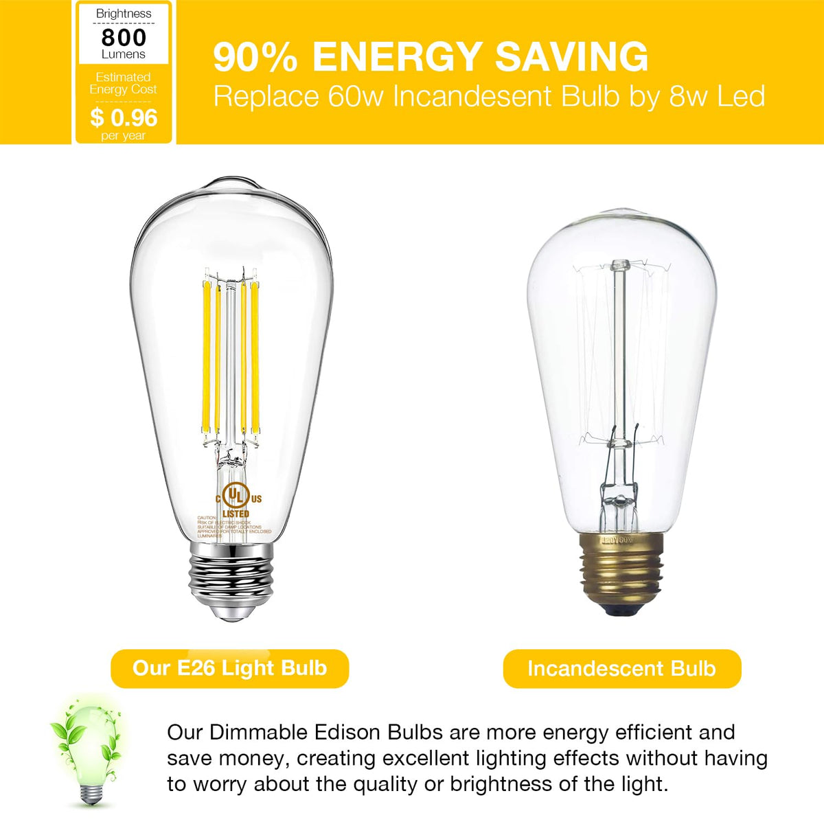 Q: What are the benefits of using DAYBETTER Vintage LED Edison Bulbs?A: DAYBETTER Vintage LED Edison Bulbs are energy-efficient, providing lighting equivalent to a 60-watt incandescent bulb while saving over 90% on your lighting bill. They last over 15,000 hours, reducing the frequency of bulb replacements.