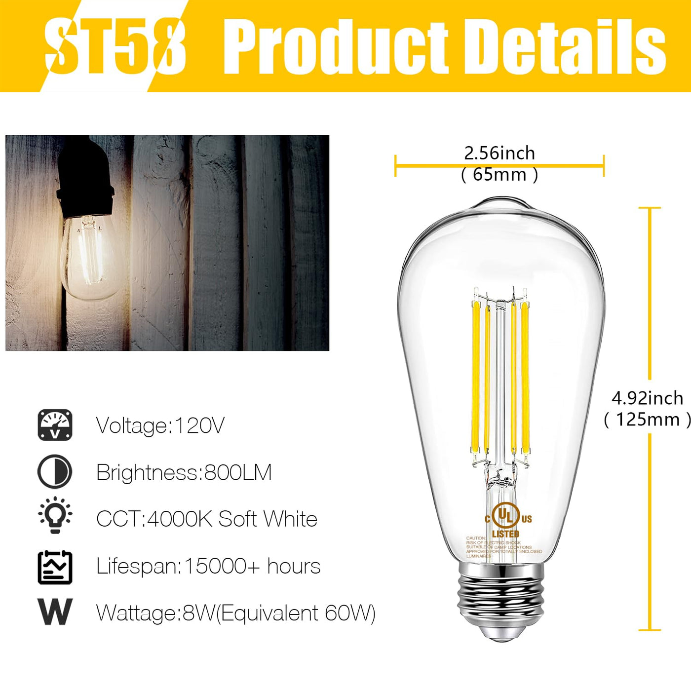 Daybetter 24 Pack Vintage Led Edison Bulbs, E26 Led Bulb 60W Equivalent, Dimmable Led Light Bulbs, High Brightness 800 Lm Neutral White 4000K, St58 Antique Filament Bulbs, Clear Glass Style For Home