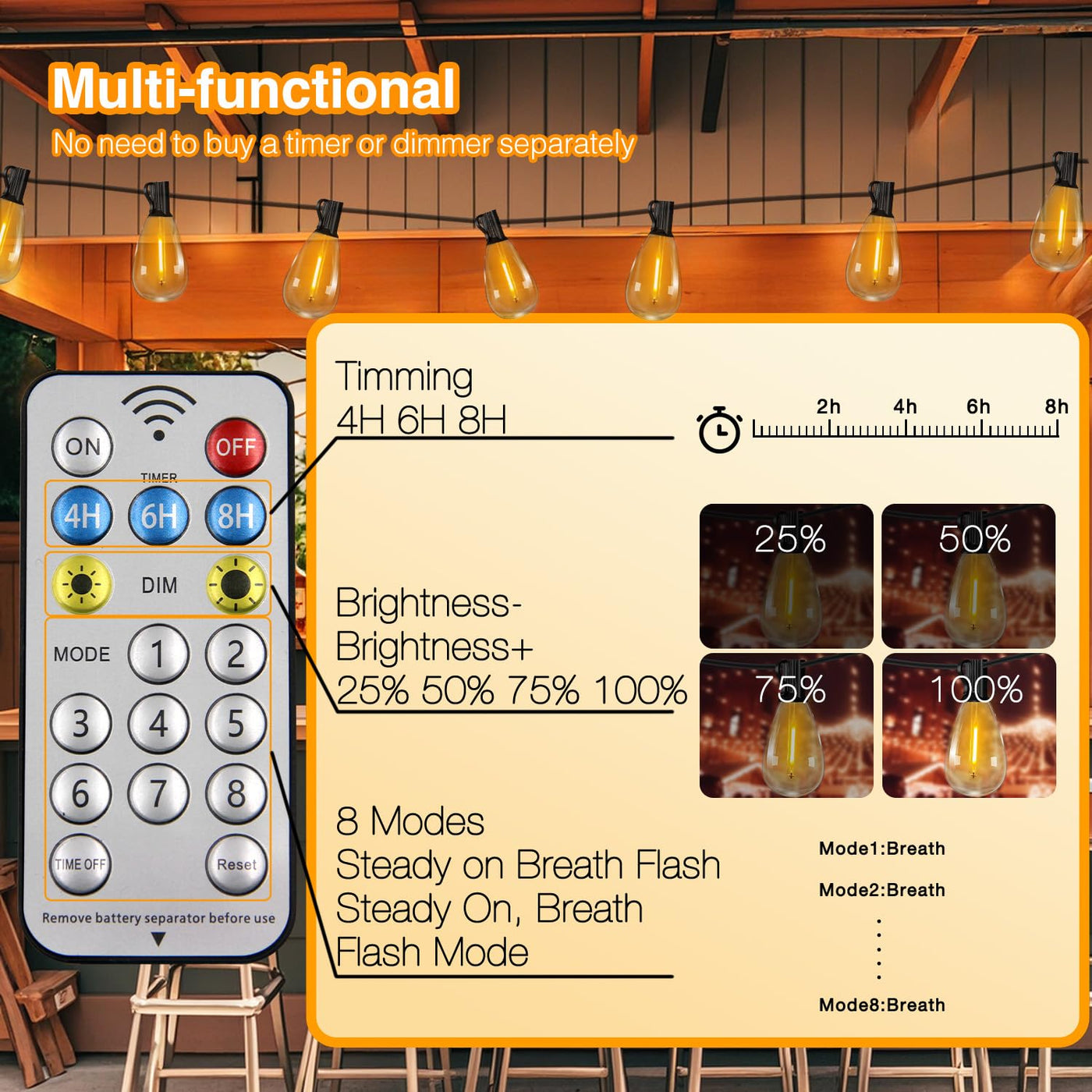Daybetter 50Ft Solar String Lights Outdoor Waterproof With Remote & Usb Port Dimmable & Timmer,Solar Patio Lights 15+1 Led Shatt