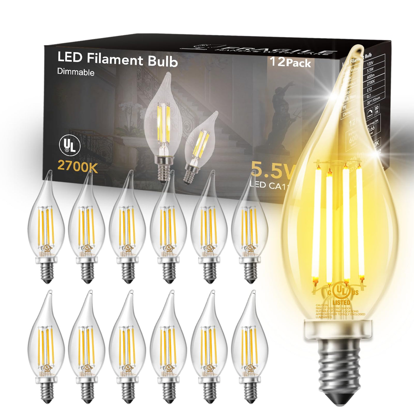 Daybetter 6 Pack Dimmable Candelabra Light Bulbs, Flame Tip Vintage Led Candle Bulbs, E12 Small Base, 60 Watt Equivalent, 2700K