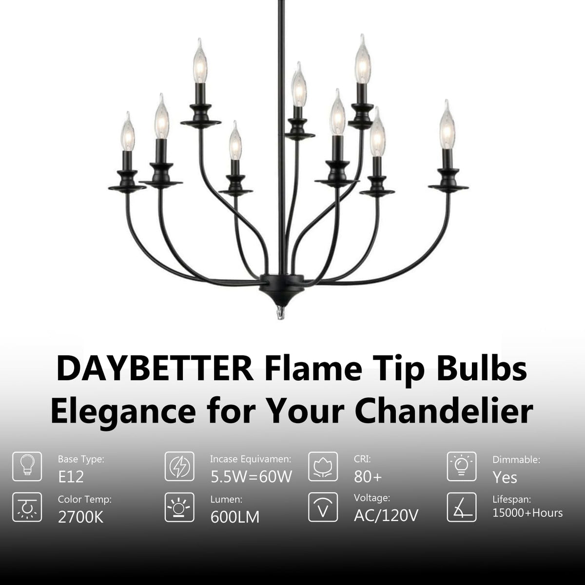 Daybetter 6 Pack Dimmable Candelabra Light Bulbs, Flame Tip Vintage Led Candle Bulbs, E12 Small Base, 60 Watt Equivalent, 5000K