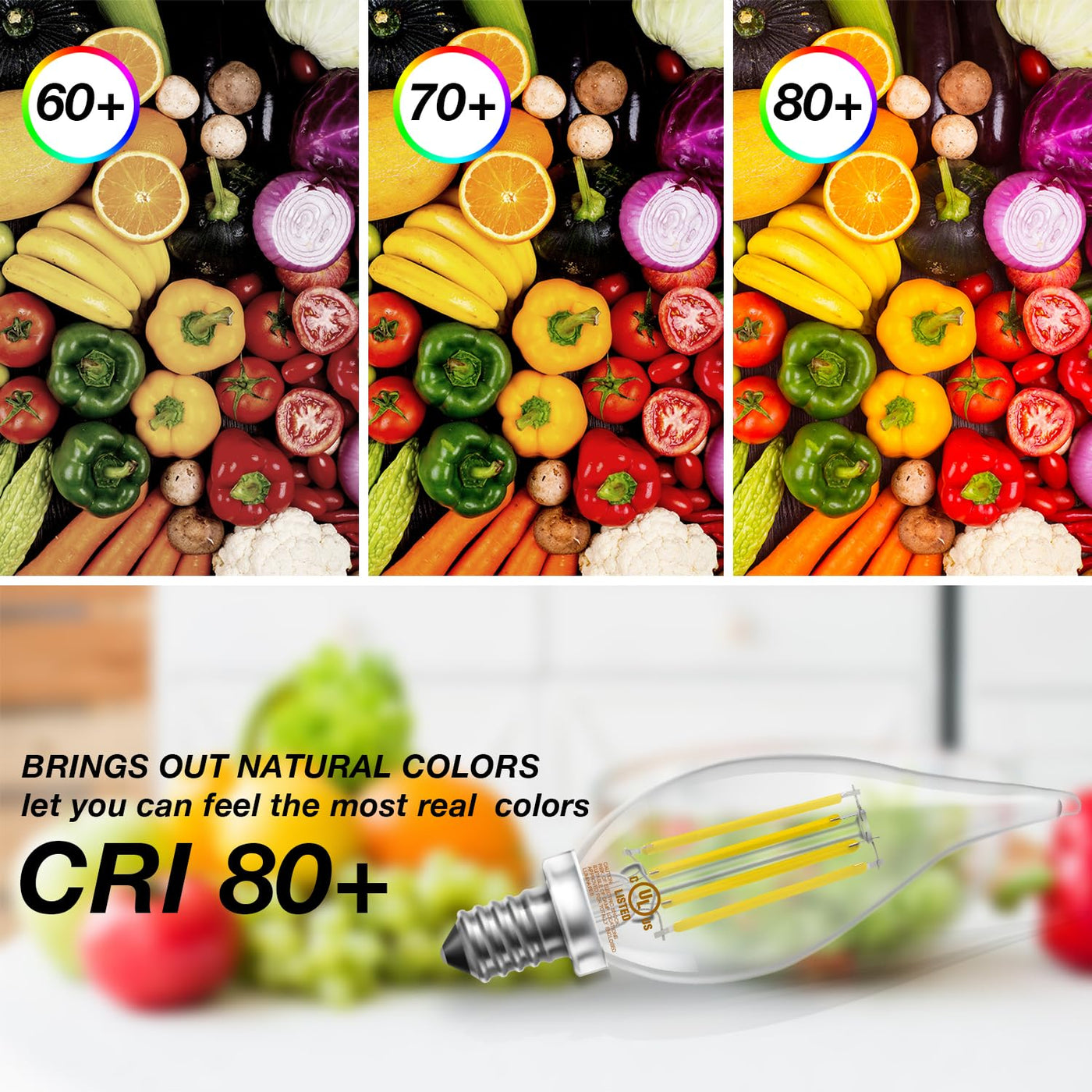 2. The e12 candelabra bulb give off 600lm warm white lighting with 80+ High CRI (color rendering index), 360°beam angle, creating a bright atmosphere for any room. Create a wonderful evening for your family.