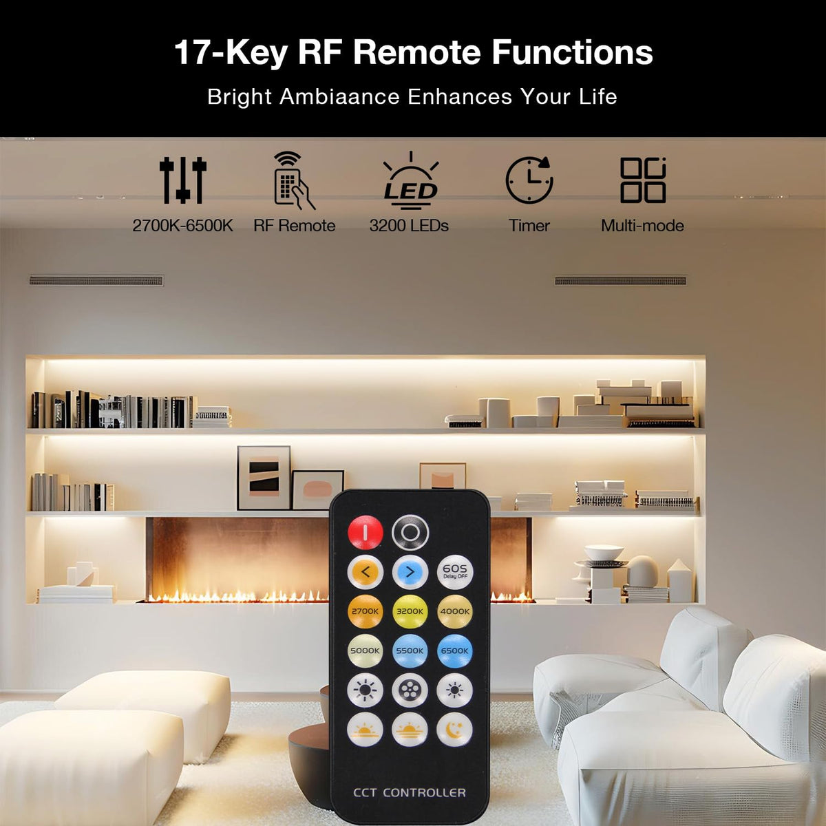 Q: Can I control the brightness and color temperature of the LED strip?A: Yes, the DAYBETTER COB LED Strip Light comes with an upgraded RF remote control that allows you to adjust the brightness and switch between different color temperatures easily. You can also set timers, choose dynamic functions, and save your preferred settings with the memory function.