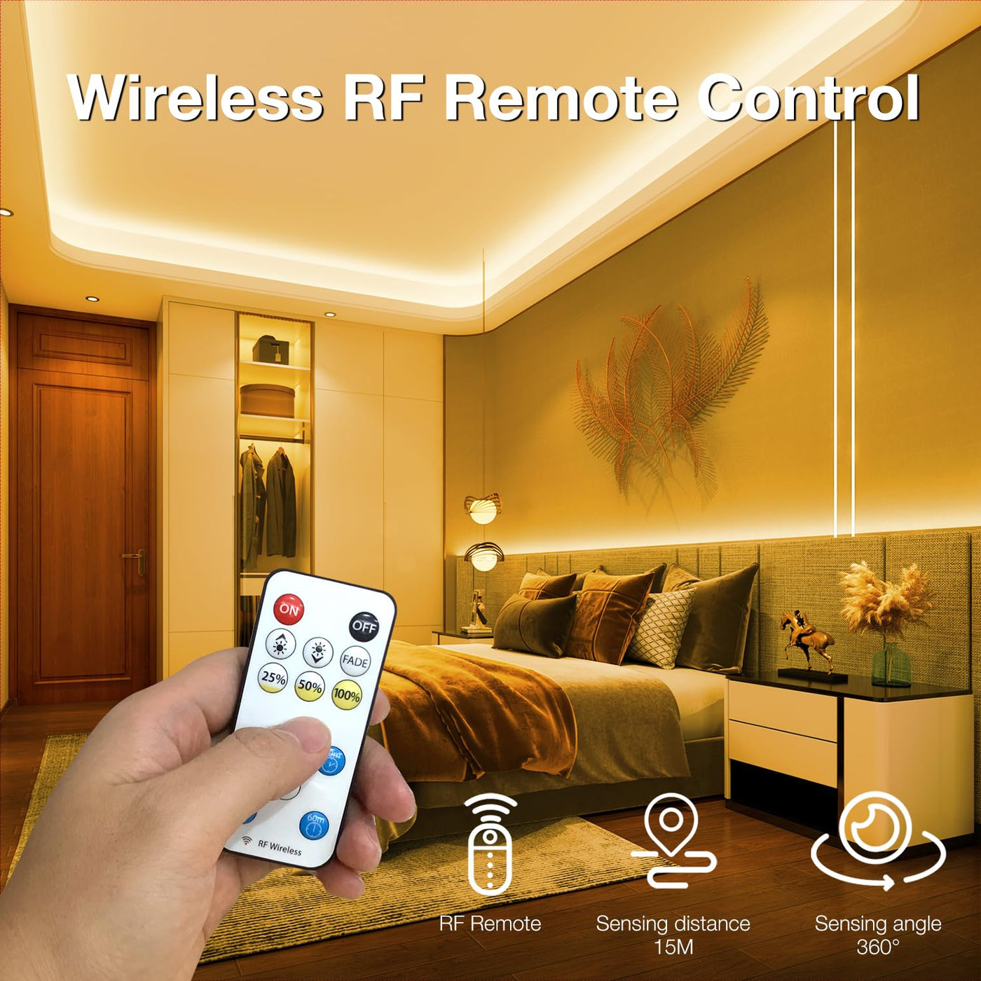 Q: How can I control the DAYBETTER COB LED Strip Lights?A: You can control the DAYBETTER COB LED Strip Lights using both an RF remote and a mobile app. This dual control feature adds convenience and versatility, allowing you to easily adjust brightness and settings from anywhere in the room.
