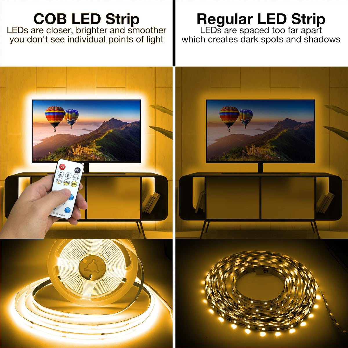 Daybetter Cob Led Strip Lights With Remote And App Control, 32.8Ft 3000K Dimmable Ultra Bright Warm White Cob Light Strip, Indoo