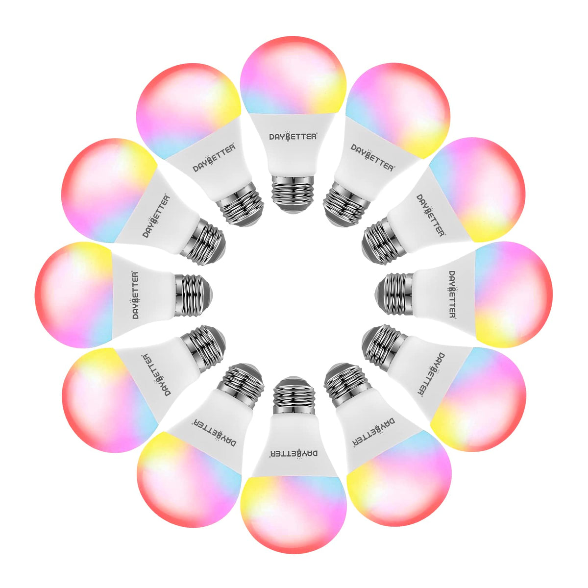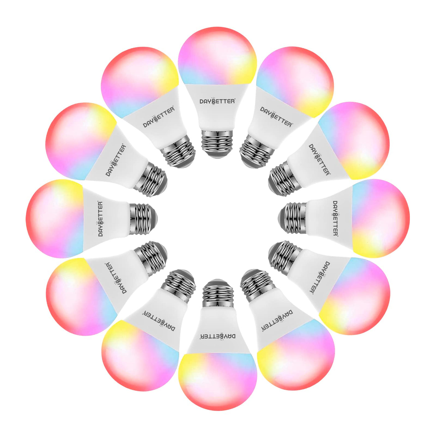 DAYBETTER Smart Light Bulbs 12 Pack, A19 multicolor led light bulb can be used with Alexa and google Home Assistant to provide unique lighting for your home With the help of Bluetooth mesh network technology (24Hz WIFI only), each color-changing light bulbs can be used as a range extender, enabling simple family installation and one-key activation